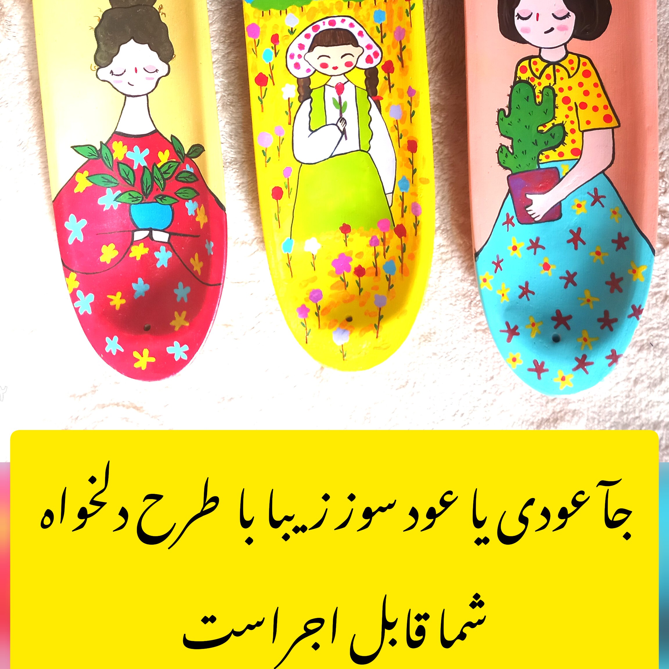 ✅️طرح و رنگ زمینه و سایز با توجه به سلیقه ی شما قابل تغییر است. ✅️به صورت رو میزی قابل استفاده هست. ✅️نقاشی شده کامل با دست 👍 ✅️قابل شستشو با ابر نرم و آب ✅️اگه طرحی مد نظرتون بود ،ولی در غرفه پیدا نکردی میتونی برام عکسشو بفرستی یا توضیحی در مورد طرح مد نظرتون بدید تا من براتون ایده ی نزدیک به سلیقه ی شما رو بفرستم تا انتخاب کنید😊 ✅️رنگ و طرح قابل تغییر است به سلیقه ی شما مشتری عزیز،ولی آماده سازی حدود 5الی 6 روز طول میکشه.