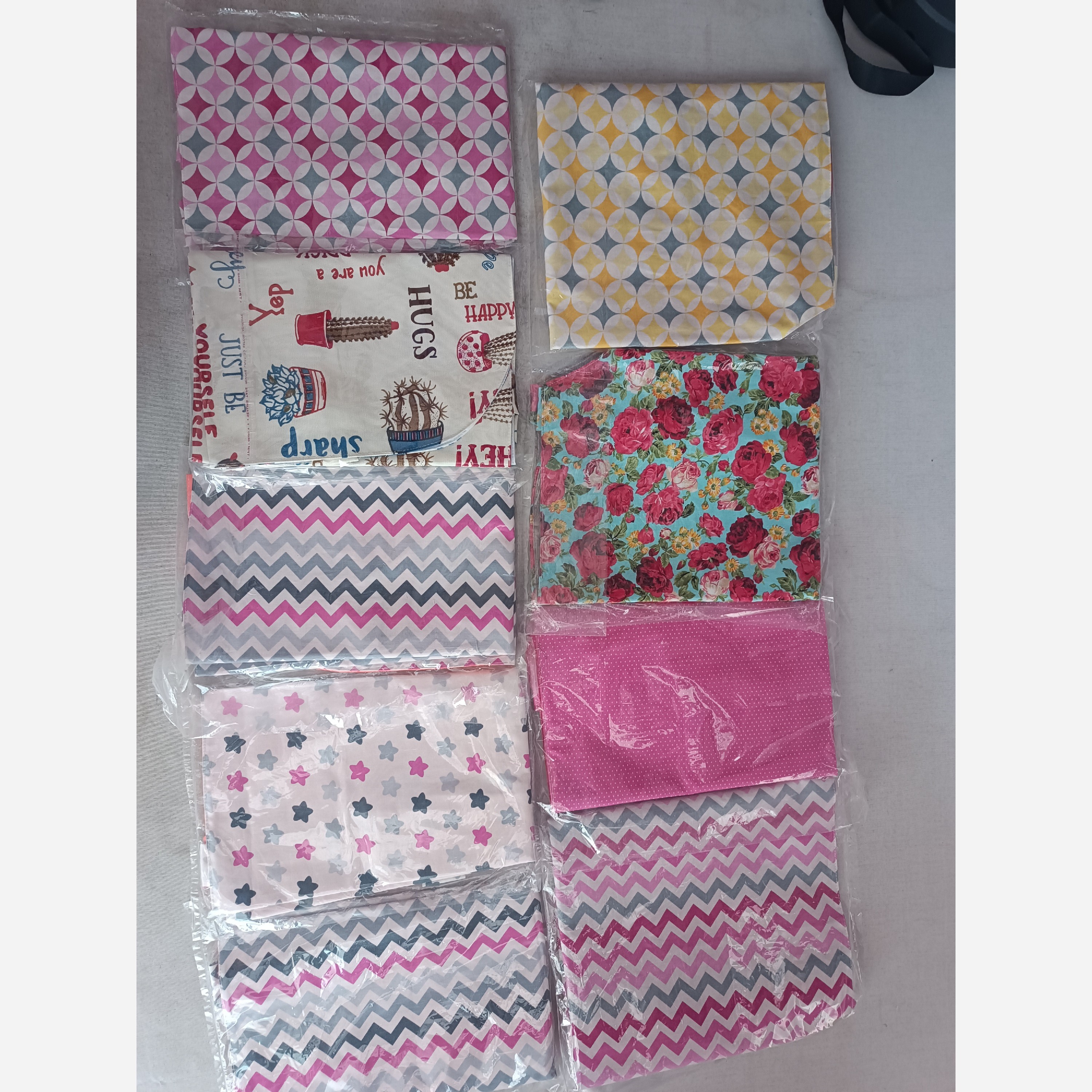 پیش بند ساده با پارچه کتان نخ در چندین طرح مختلف موجود است پشت کار لایه برزنت ضد آب استفاده شده که هم بسیار محکم است و هم ضد آب و مزیت دیگر آن این است که وزن پیشبند را بسیار سبک میکند برای هر پیشبند انتخابی رنگ برزنت پشت کار قابل تغییر است سفید سرمه ای صورتی