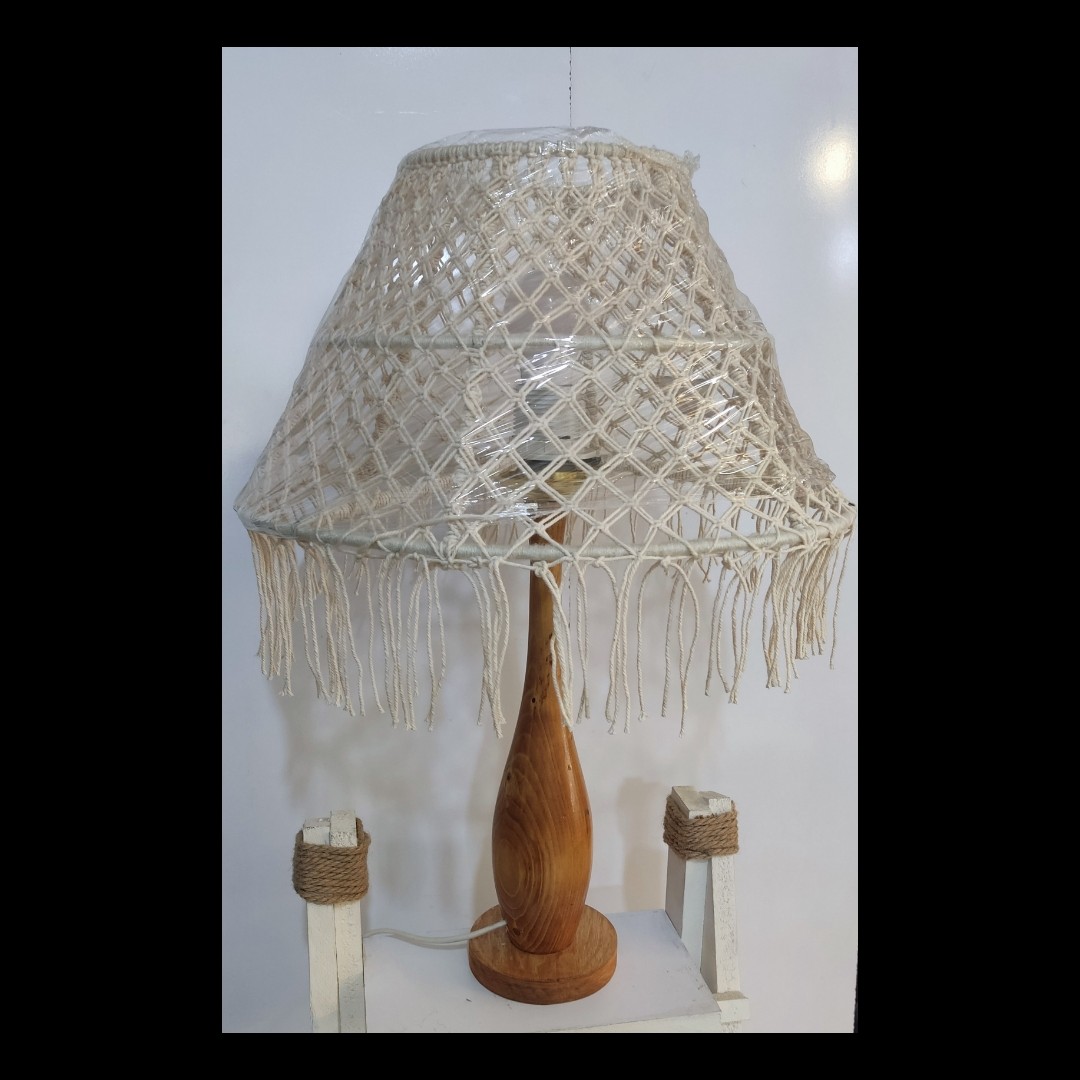 امروزه استقبال از آباژور های رومیزی به علت نوردهی خاص و زیبایی ظاهر آن رو به افزایش گذاشته است و اکثر افراد برای داشتن یک نورپردازی ملایم و گرم و دوستانه بهترین گزینه را استفاده از آباژور می دانند. این آباژور خاص با طرح بافت گره مکرمه ویژه آن قطعا انتخاب و سلیقه افراد خاص پسند را برآورده میکند. ترکیب طرح ساده پایه و گره خاص شید، آنرا برای استفاده در فضاهایی که تنها نوردهی مطرح نباشد، گزینه ای بسیار مطلوب کرده است. این آباژور خاص حتی در هنگام خاموش بودن هم جلوه گری میکند و چشم هر بیننده ای را به خود جلب میکند. رنگ ملایم و دوستانه آباژور ارایه شده آنرا برای استفاده در اکثر مکان ها مناسب میکند. ارتفاع این کار ۵۰ سانتیمتر و قطر دهانه شید حدود ۳۳ سانتیمتر و نخ به کار رفته در بافت شید، نخ مکرمه میباشد.