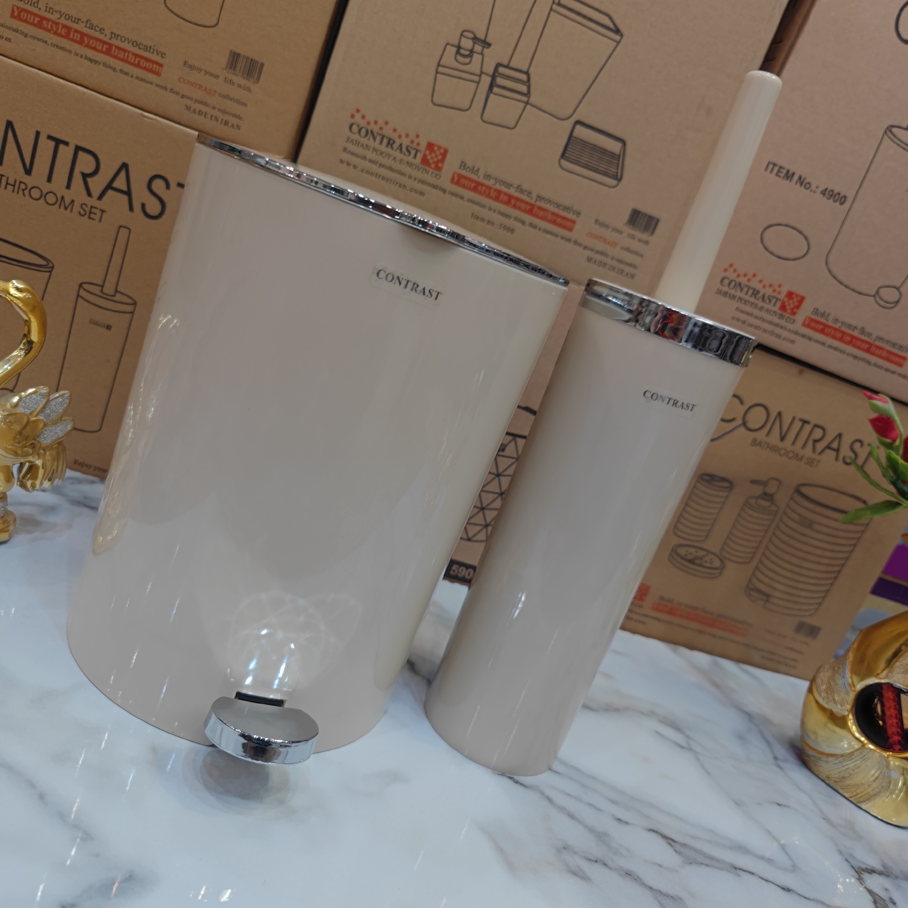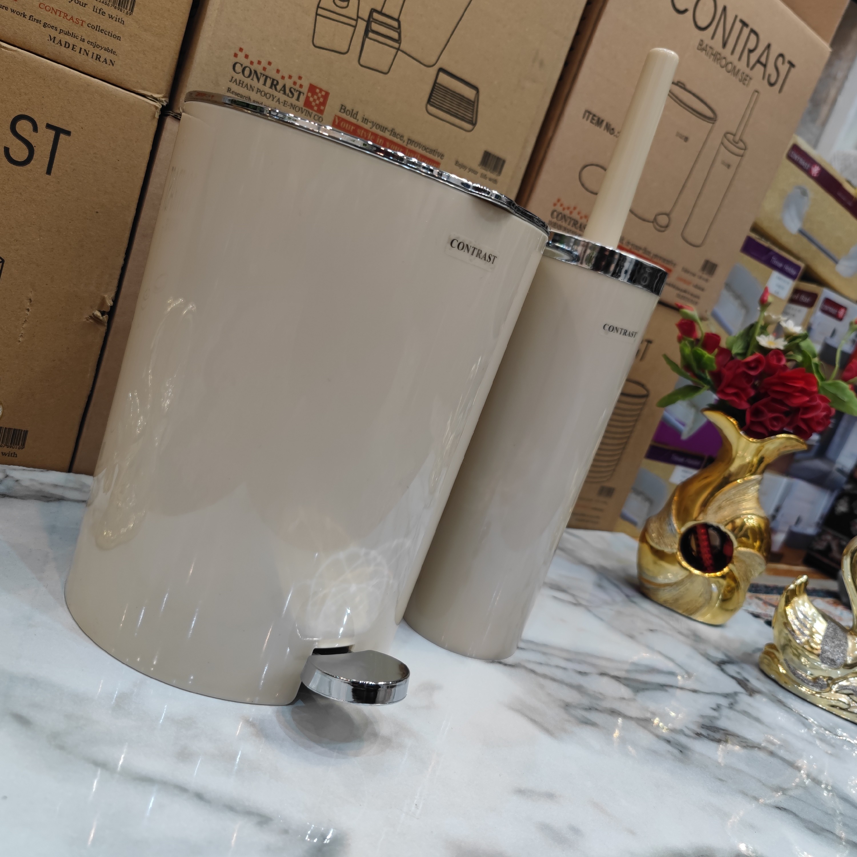 ست سرویس بهداشتی سطل و برس مدل دوجداره برند کنتراست رنگ زیبا و شکیل وانیلی کروم نو آکبند باکیفیت بالا مبلمونسرا مدل 264982