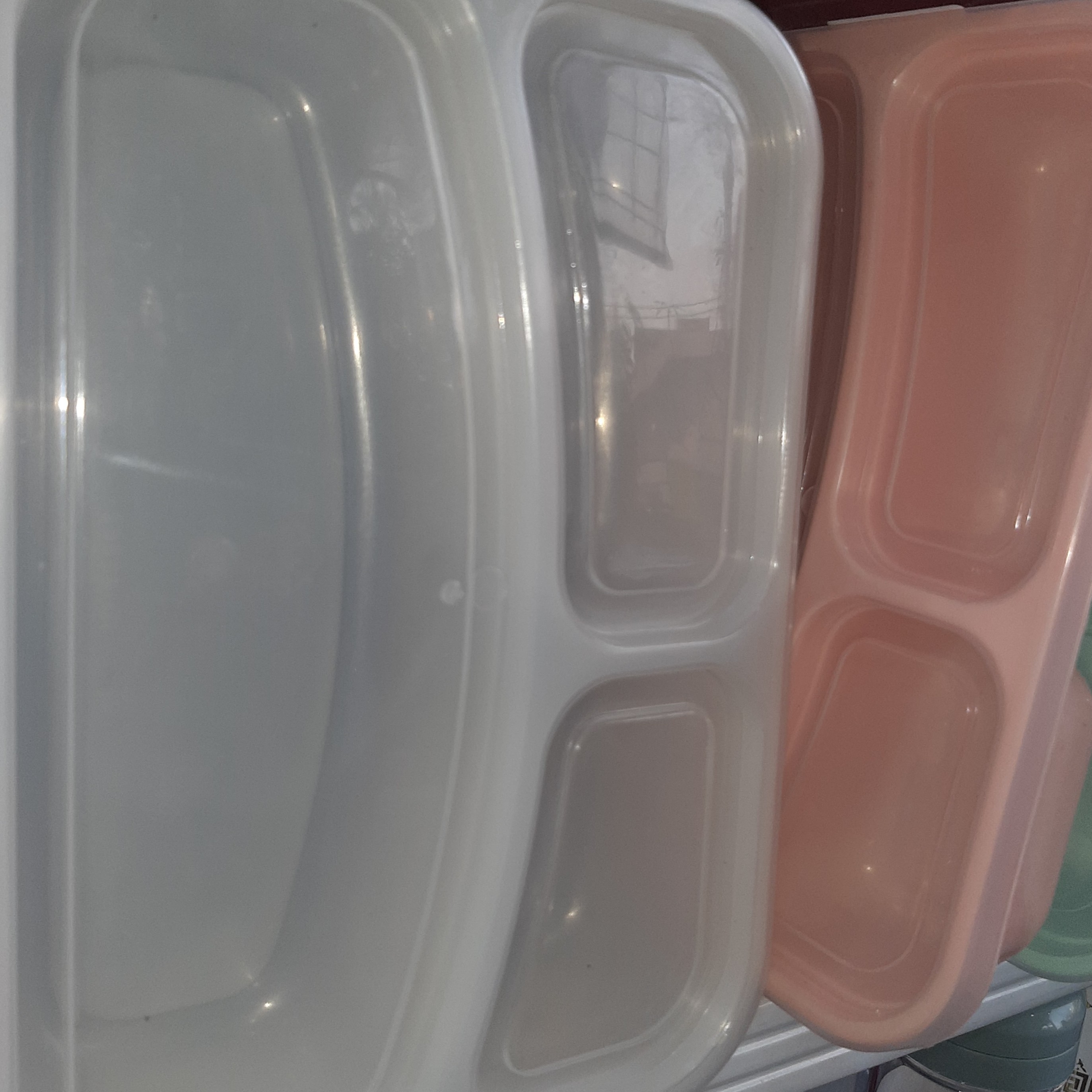 این ظرف ۳خانه درب دار قیمت مناسب در۳رنگ صورتی سفید آبی به قیمت ۱بسته پفک