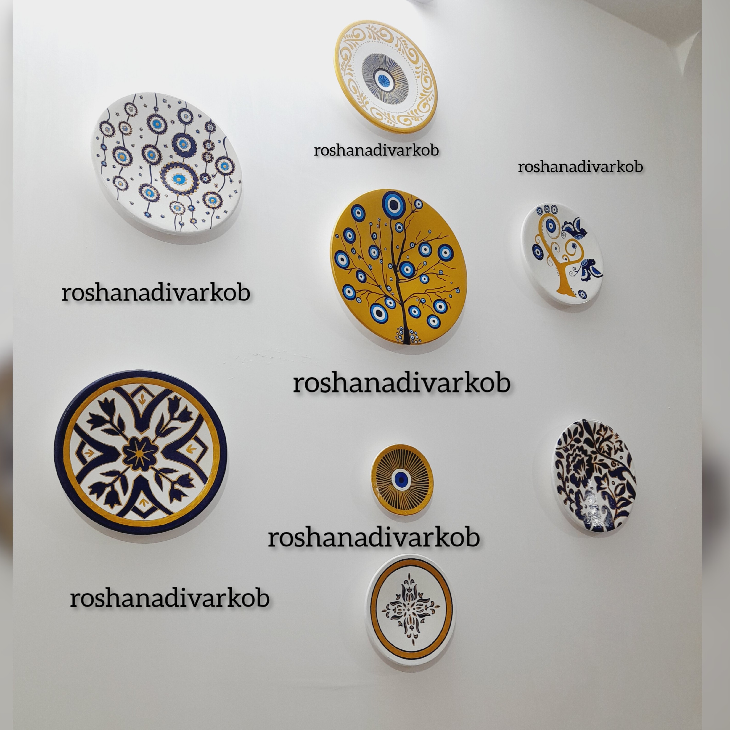 دیوارکوب های زیبا هنردست ووبراق ست هشت عددی چشمی سفالی سرامیکی ابعاد.۲۰.۲۰.۲۰.۲۰.۲۰.۲۵.۱۵.۱۰سانت