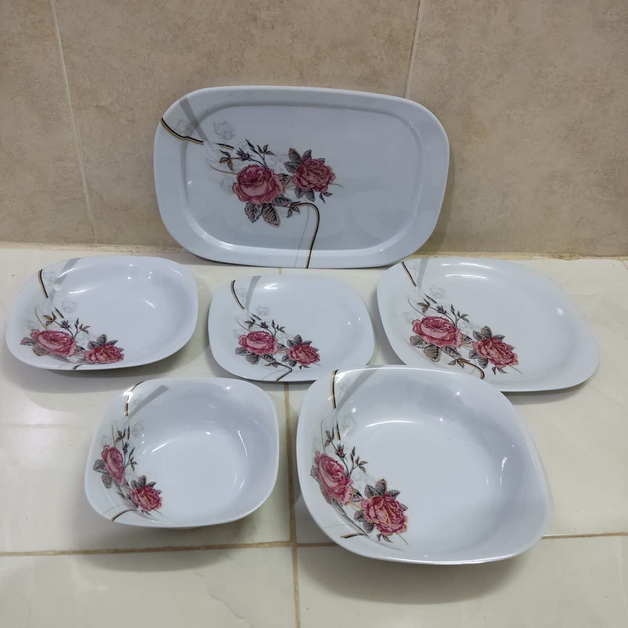ملامین سرویس ملامین مربع طرح گل رز 32 پارچه شیرکوه یزد دارای استاندارد 6 نف مبلمونسرا مدل 291478