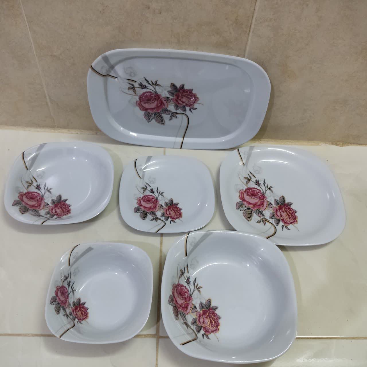 ملامین سرویس ملامین مربع طرح گل رز 32 پارچه شیرکوه یزد دارای استاندارد 6 نفره سرویس شامل 6 عدد برنج خوری سایز 25 سانت 6 عدد خورشت خوری سایز 21 در 21 در 3 سانت 6 عدد میوه خوری سایز 19 سانت 6 عدد ماست خوری سایز 13 در 13 در3.5 سانت 6 عدد آبگوشت خوری سایز 17 در 17 در 5 سانت یک نفره یک عدد دیس بزرگ سایز 37.5 در 24.5سانت یک عدد کاسه سالاد بزرگ سایز 22.5در 22.5در 4.5سانت دارای استاندارد