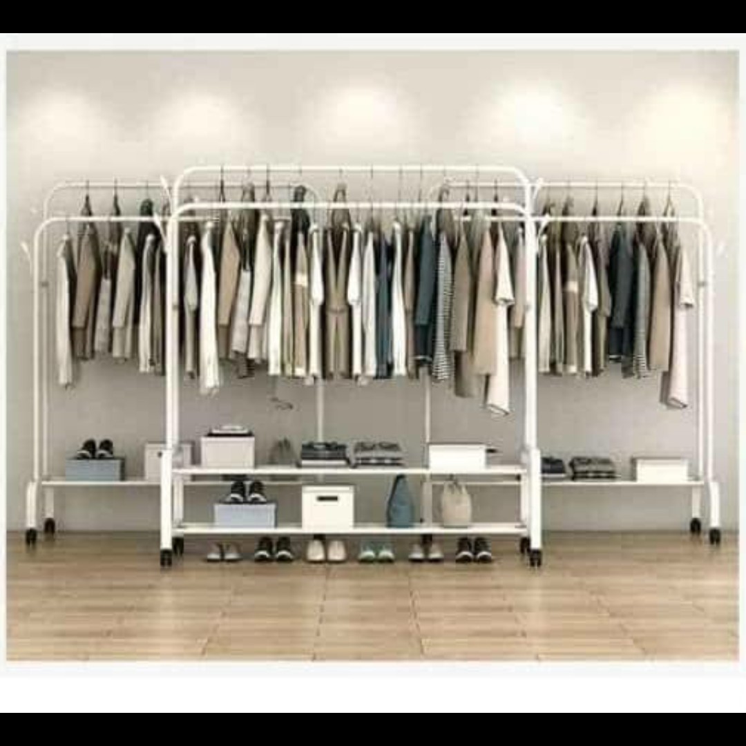 رگال دقیقا عین عکس اولی دو طبقه هم از بالا هم پایین دو طبقه تحمل وزن 48کیلو برای کل رگال یعنی این مقدار باید بین تمامی رگال تقسیم بشه در دو رنگ سفید و مشکی دوبل چرخدار قابل حمل روکش دار ساخت چین،بدنه فلزی با روکش ضد زنگ تحمل وزن تا48کیلوگرم سایز150در110در57 رگال لباس که شامل آویز لباس است که به راحتی می توانید مانتوها ، کلیدها ، کلاه ها و روسری ها را آویزان کنید.در حالی که می توان از طبقه آن بعنوان جای کفش و کیف استفاده کرد.