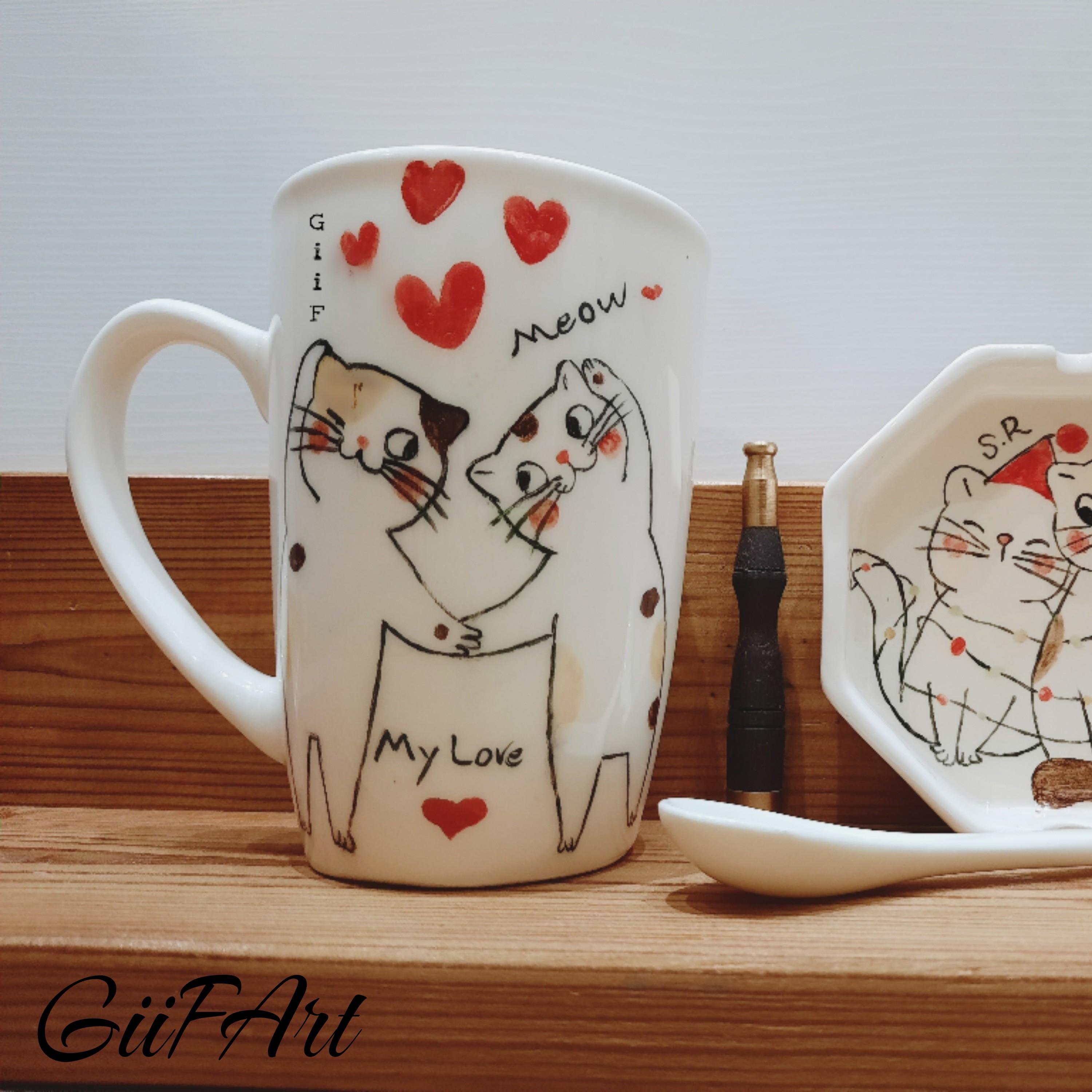 ست سرامیکی ماگ و زیر سیگاری طرح عشق قابل مصرف قابل شستشو با ماشین ظرفشویی