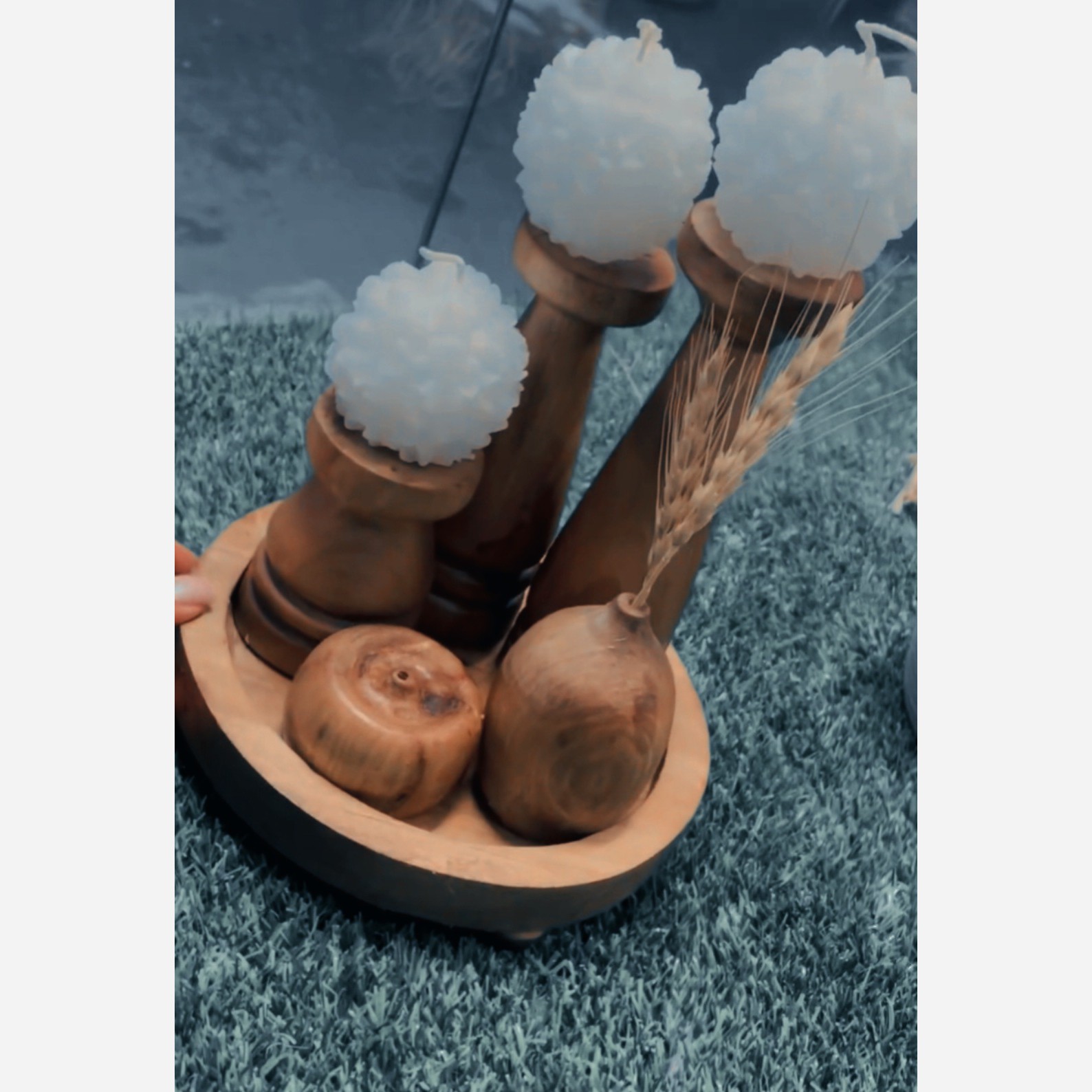 شمعدان چوبی گلدان چوبی و جا عود چوبی رایزر گردچوبی مبلمونسرا مدل 282947
