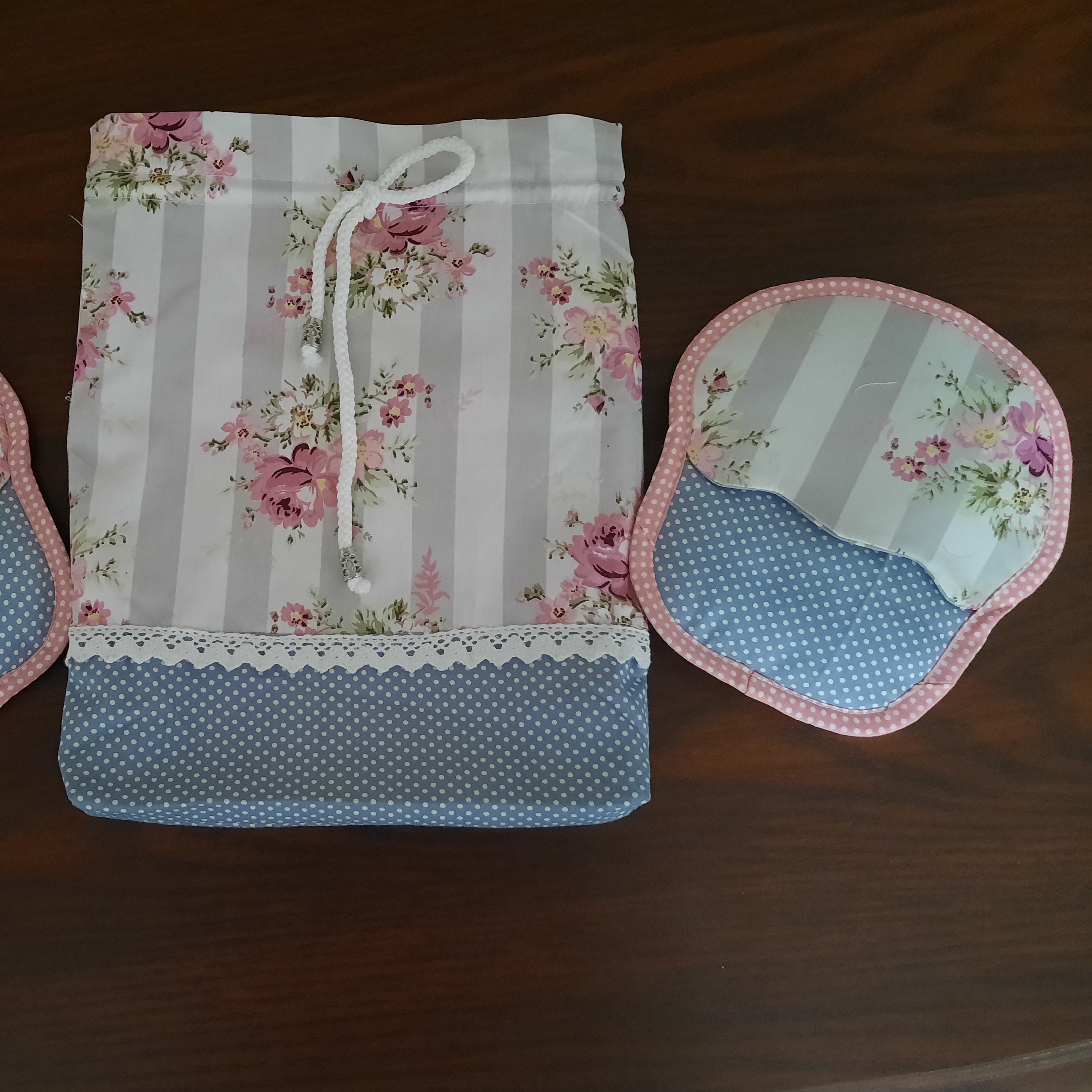 سرویس اشپزخانه شامل پیشبند و نمگیر گل متوسط و کیسه سبزی و دمکنی سه سایز و دستگیره قلبی یک جفت و دستکش فر یک جفت و دستگیره کاپ کیک یک جفت با پارچه فیلور درجه یک رنگ طوسی صورتی بسیار زیبا و دوخت عالی با این سرویس زیبایی اشپزخانه خود را دوچندان کنید