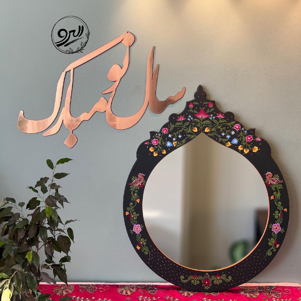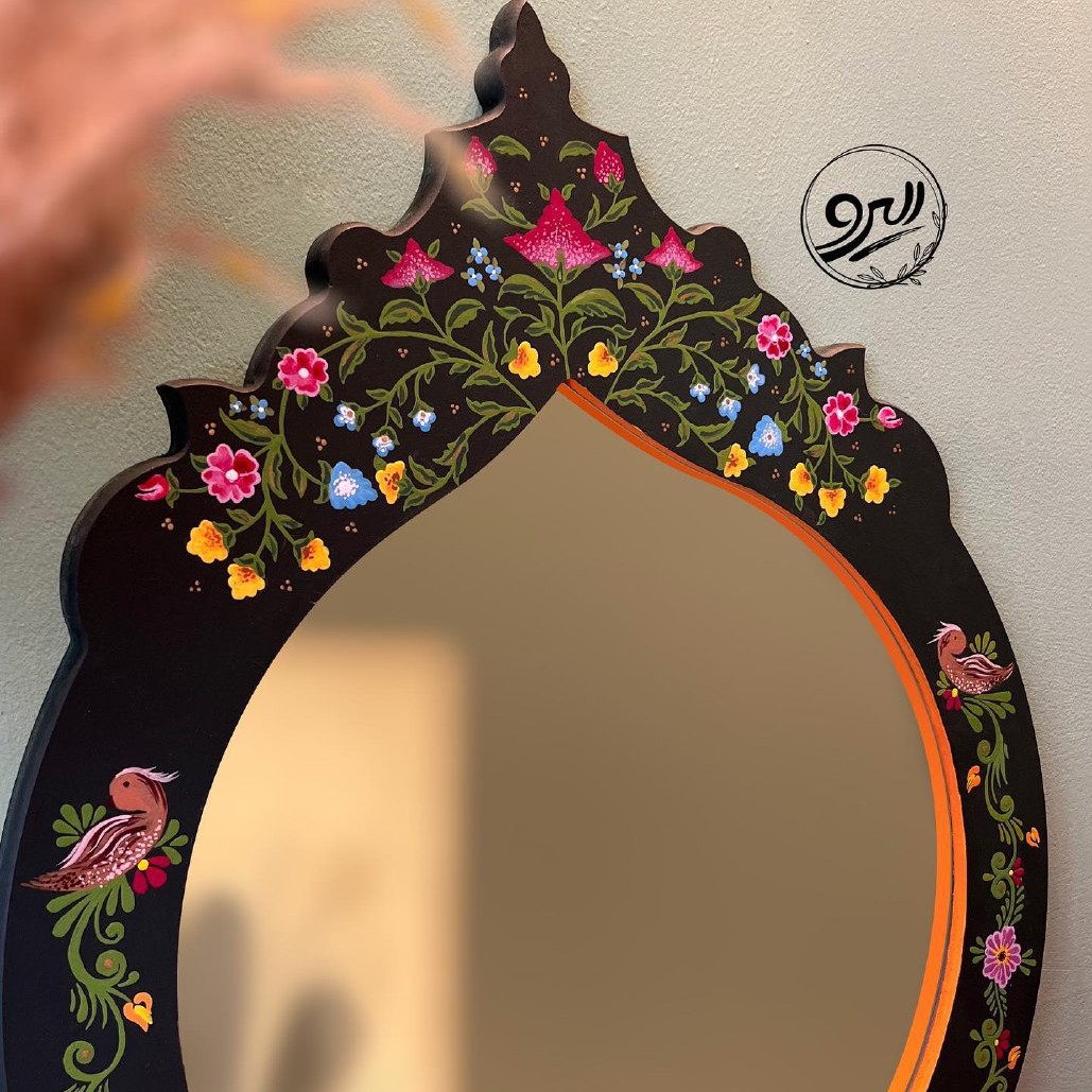 آینه نقاشی شده با دست دکوری خاص و اصیل جنس چوب با قطر 60 سانت مبلمونسرا مدل 263588