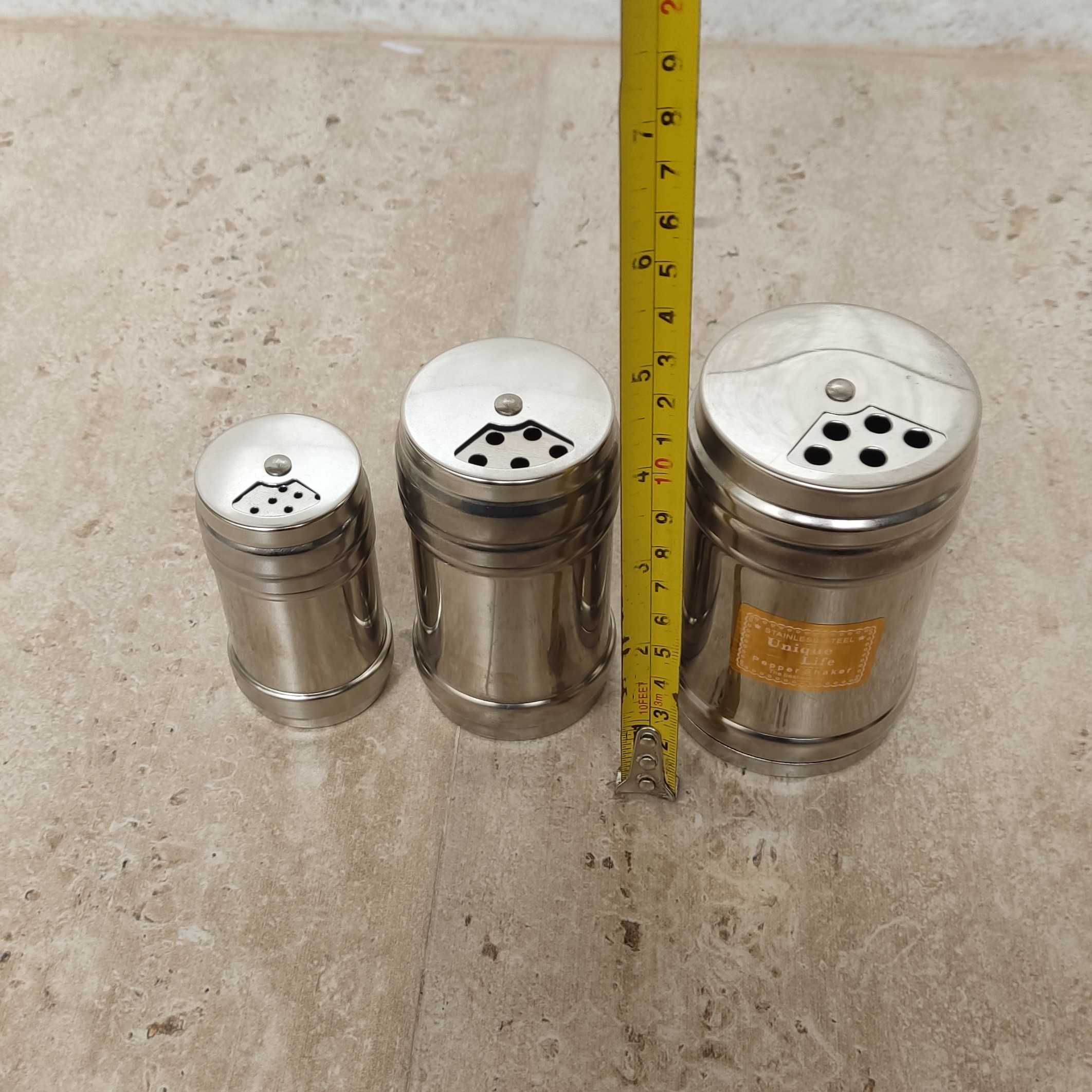 نمکدان سه عددی جنس استیل بهترین کیفیت فولاد زد زنگ از کوچک به بزرگ مارک یونیک لایف استفاده از شبکه چرخش چند منظوره به طور جداگانه کالاهای با کیفیت فولاد ضد زنگ