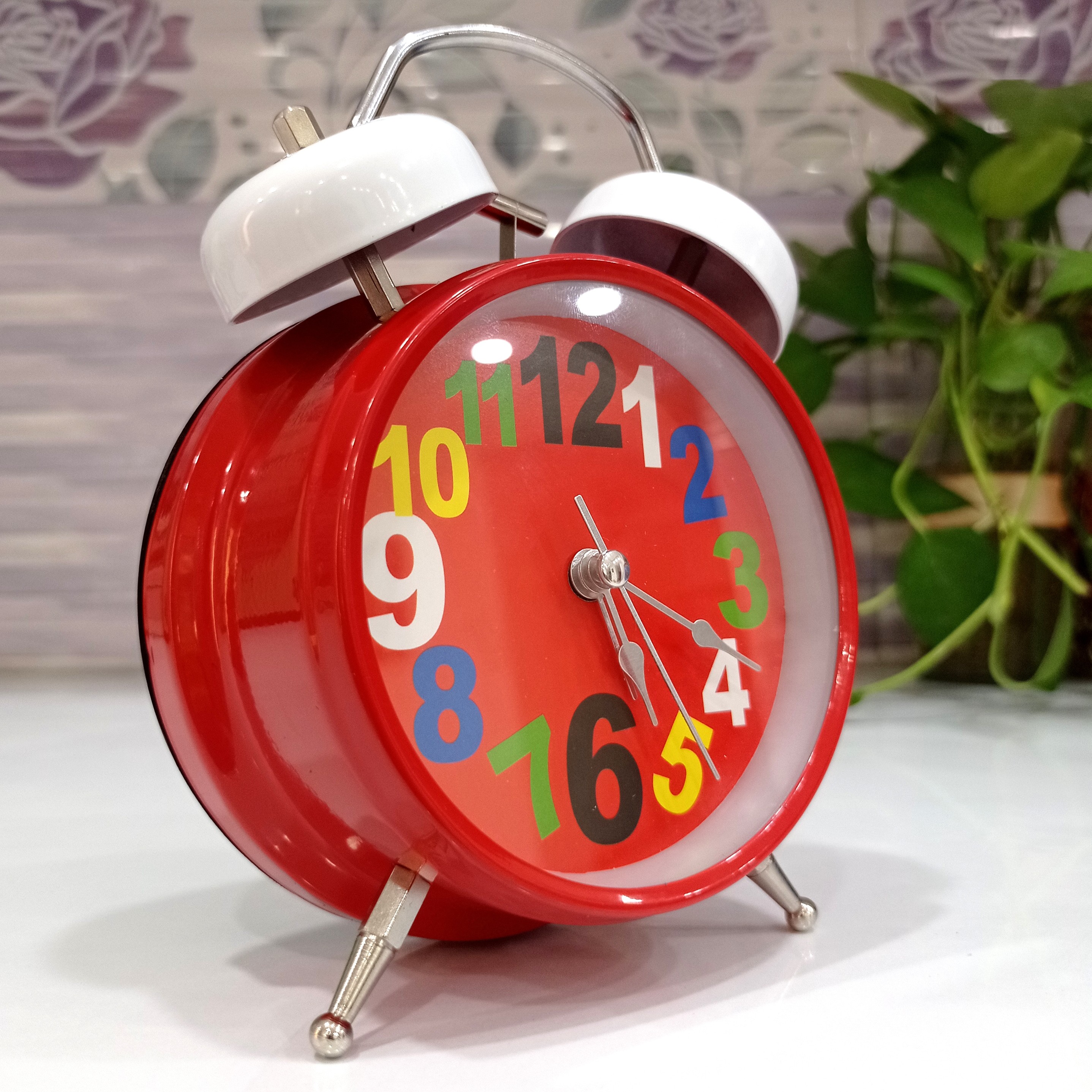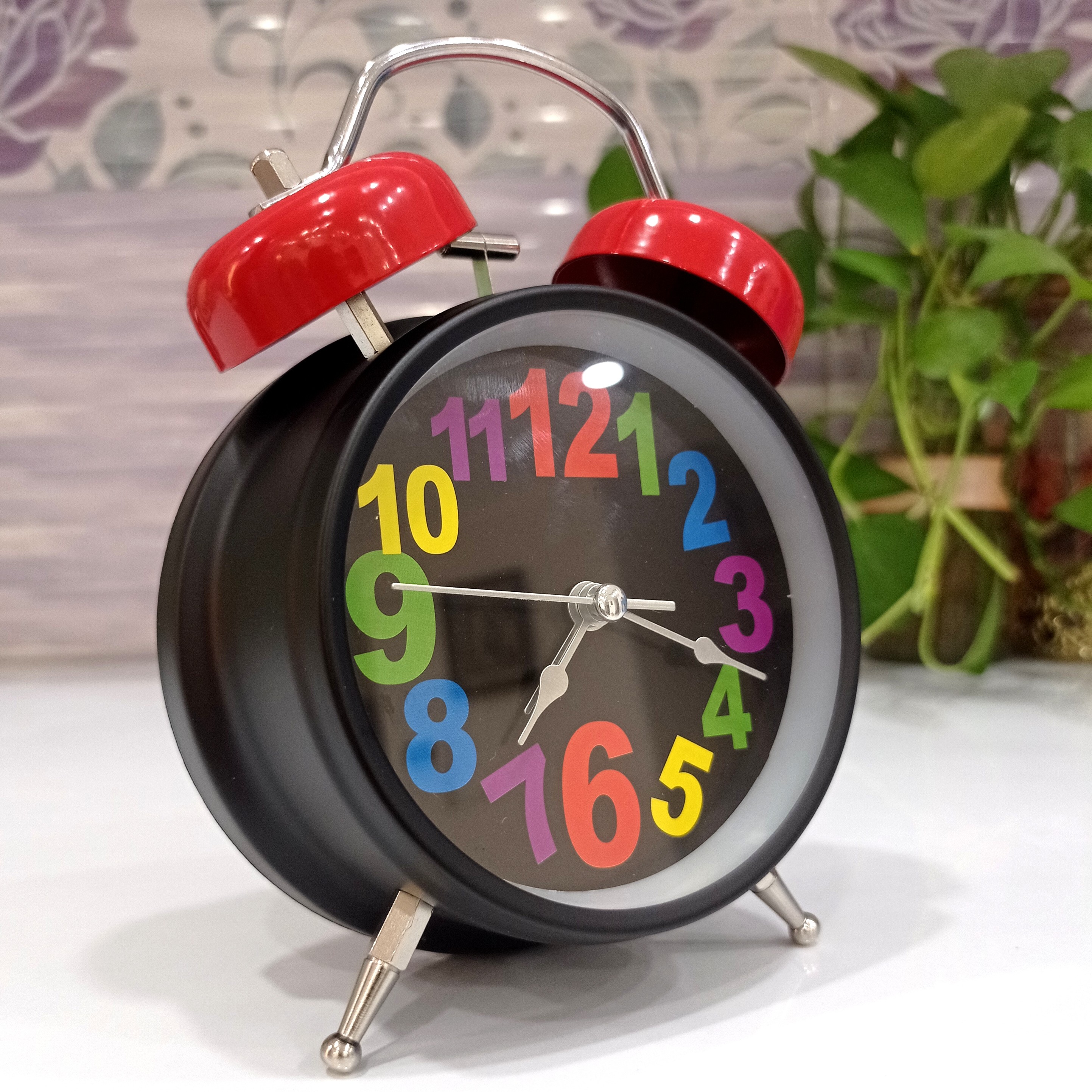 ساعت رومیزی شماطه دار فلزی مشکی قرمز سفید سبز مبلمونسرا مدل 240094