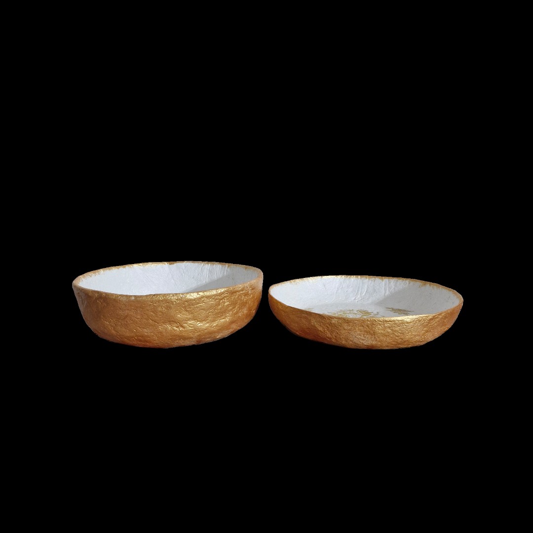 کاسه و بشقاب دستساز پاپیه ماشه طرح گل رز طلایی مبلمونسرا مدل 292510