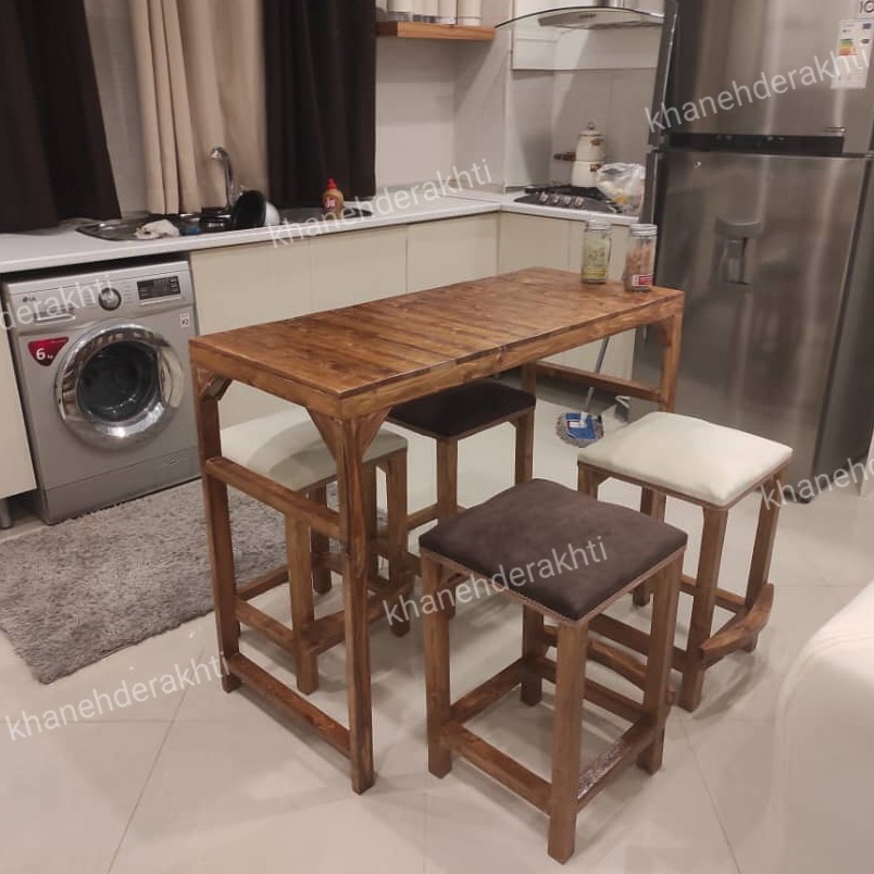 میز ناهارخوری 4نفره کمجا چوبی نهارخوری روستیک کمجا میزغذاخوری کافه ای کمجا ارسال بصورت مبلمونسرا مدل 216717