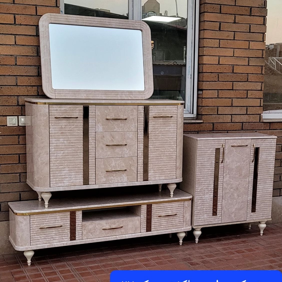 ست کامل شبستان مدل 211 شامل میز تلویزیون ، آینه کنسول ، جاکفشی رنگ مرمر مبلمونسرا مدل 221466