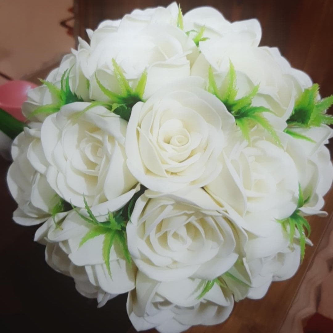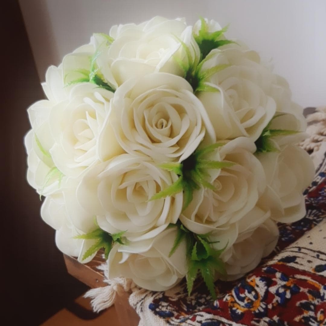 این دسته گل یکی از زیباترین وظریف ترین دسته گل های بود که تحویل مشتری داده شد. مناسب انواع مراسم نامزدی.عقد.حنابندان وعروسی یک عمر ماندگاری داره وکاری بسیار باکیفیت
