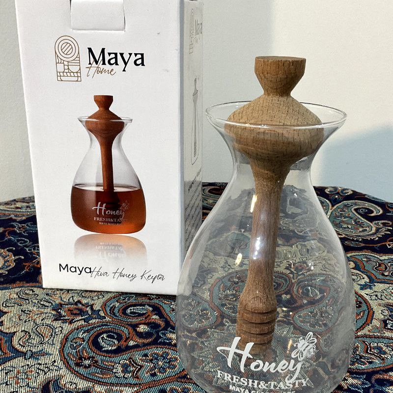 عسل خوری پیرکس درجه یک و شفاف و قاشق مخصوص عسل مبلمونسرا مدل 289470
