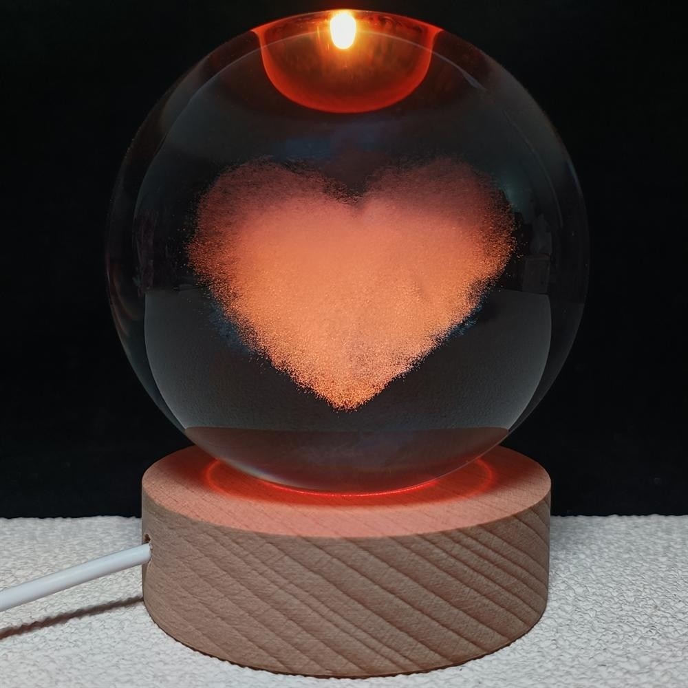 چراغ خواب گوی کریستالی قطر گوی 6 سانت ارتفاع کل 8 سانت نور هفت رنگ
