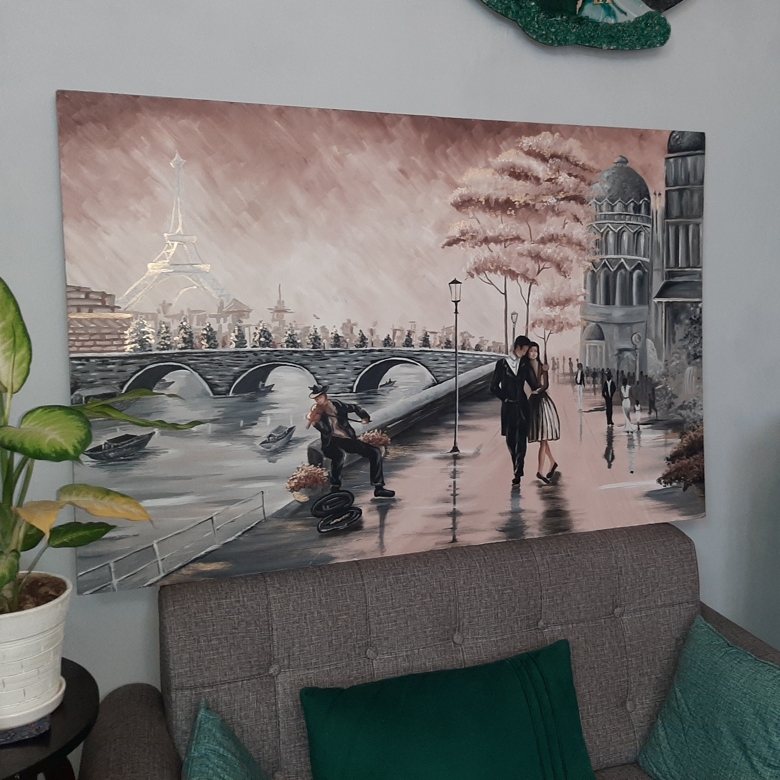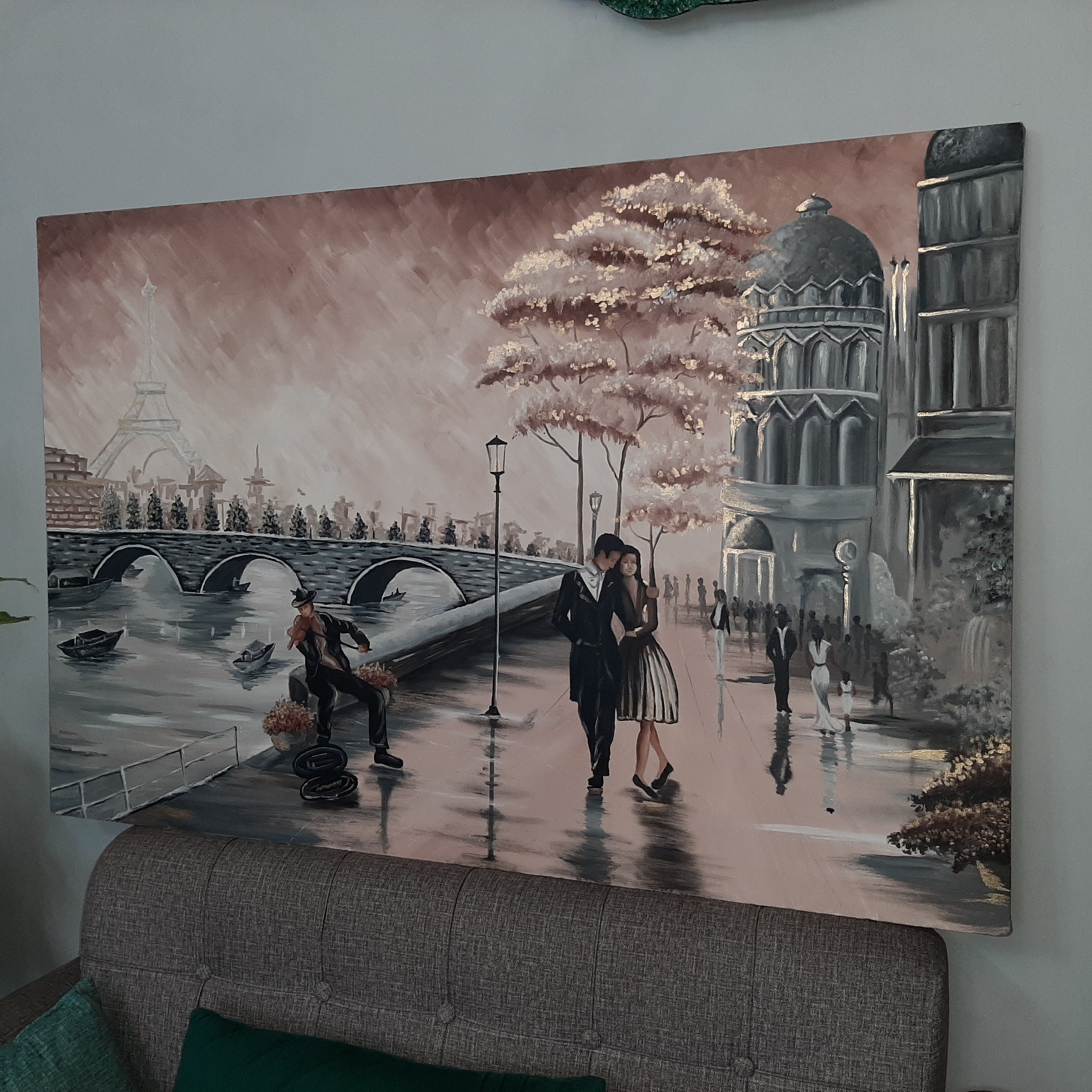 تابلو نقاشی پاریس کار شده با ورق طلا و رنگ و روغن قابل اجرا در سایز های مختلف سایز این تابلو 80 در 120 شرایط برای همه تابلو ها هست مگر غیر از این ثبت شده باشد هزینه قاب جداست هزینه ارسال هست ممکن است ی مقدار تغییر در تابلو سفارشی شما وجود داشته باشد ک ب دلیل کیفیت عکس و کار دست بودن است اما تمیزی کار یکیست