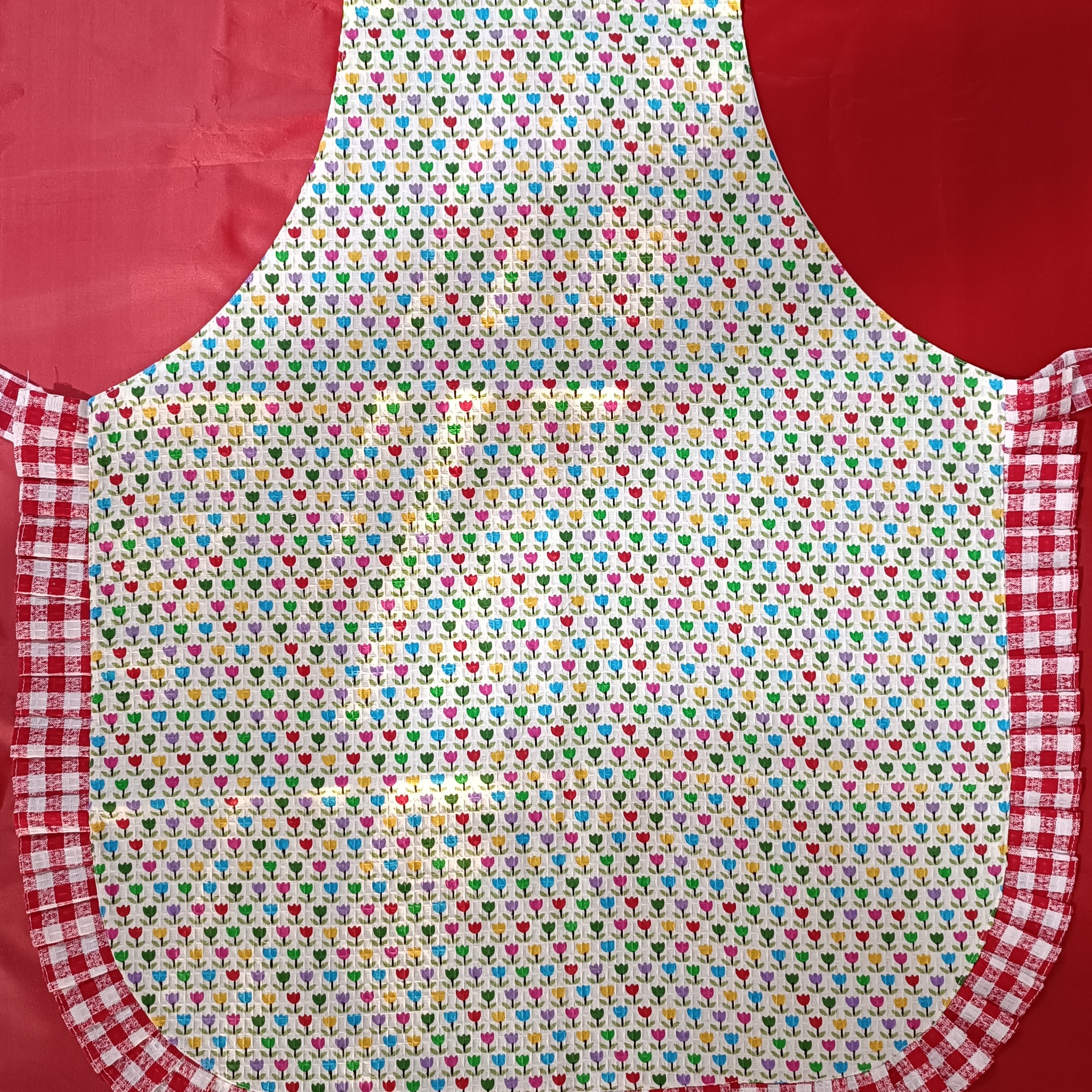 پیش بند ساده با پارچه آشپزخونه ای در چندین طرح مختلف موجود است پشت کار لایه برزنت ضد آب استفاده شده که هم بسیار محکم است و هم ضد آب و مزیت دیگر آن این است که وزن پیشبند را بسیار سبک میکند برای هر پیشبند انتخابی رنگ برزنت پشت کار قابل تغییر است سفید سرمه ای صورتی