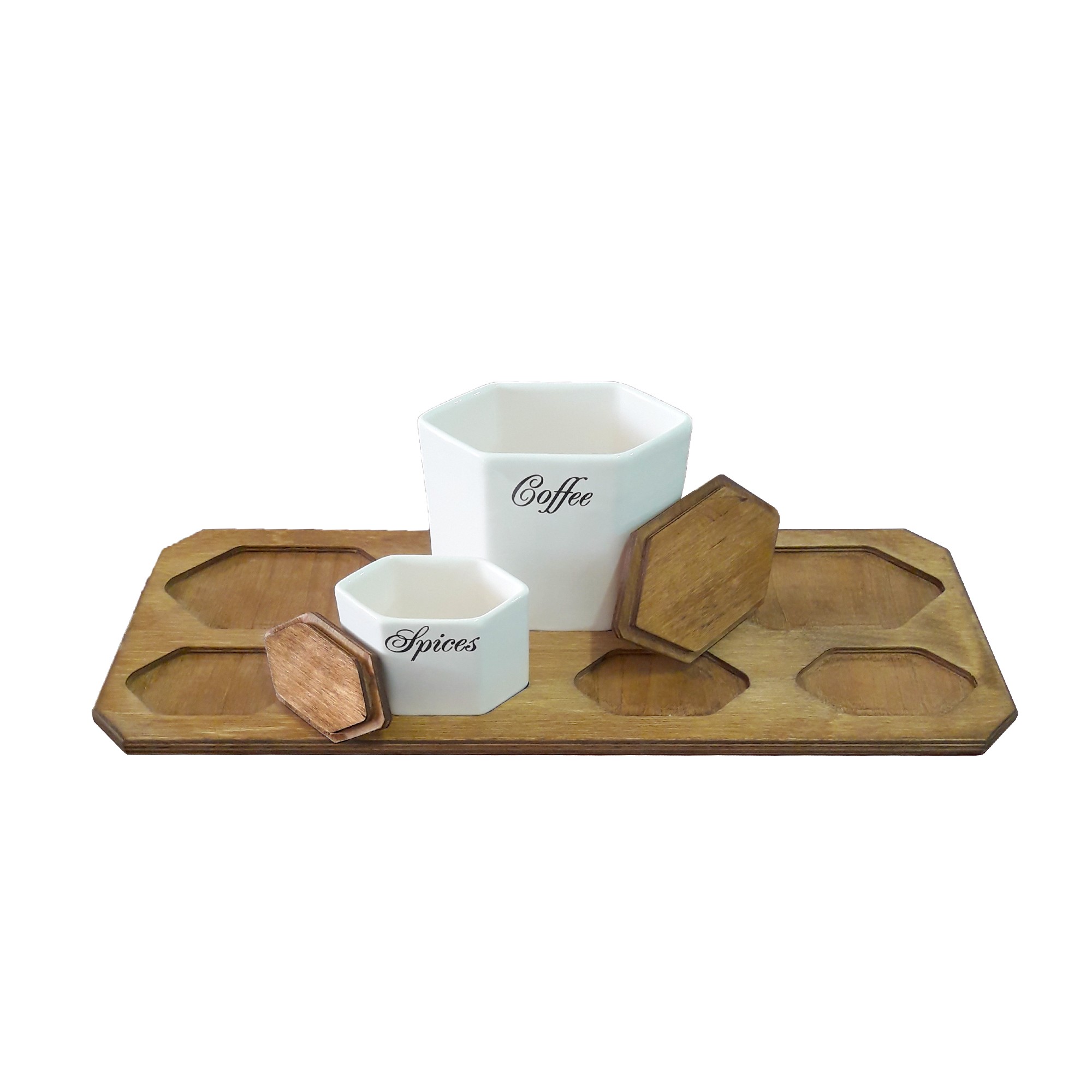 جا ادویه ای و کنار سماوری طرح شش ضلعی، طراحی و تولید شده در گروه به شکل فانتزی تولید شده و برای اولین بار در باسلام عرضه شده تا در کنار شما محیط زندگی را برای شما شادتر نماید.
