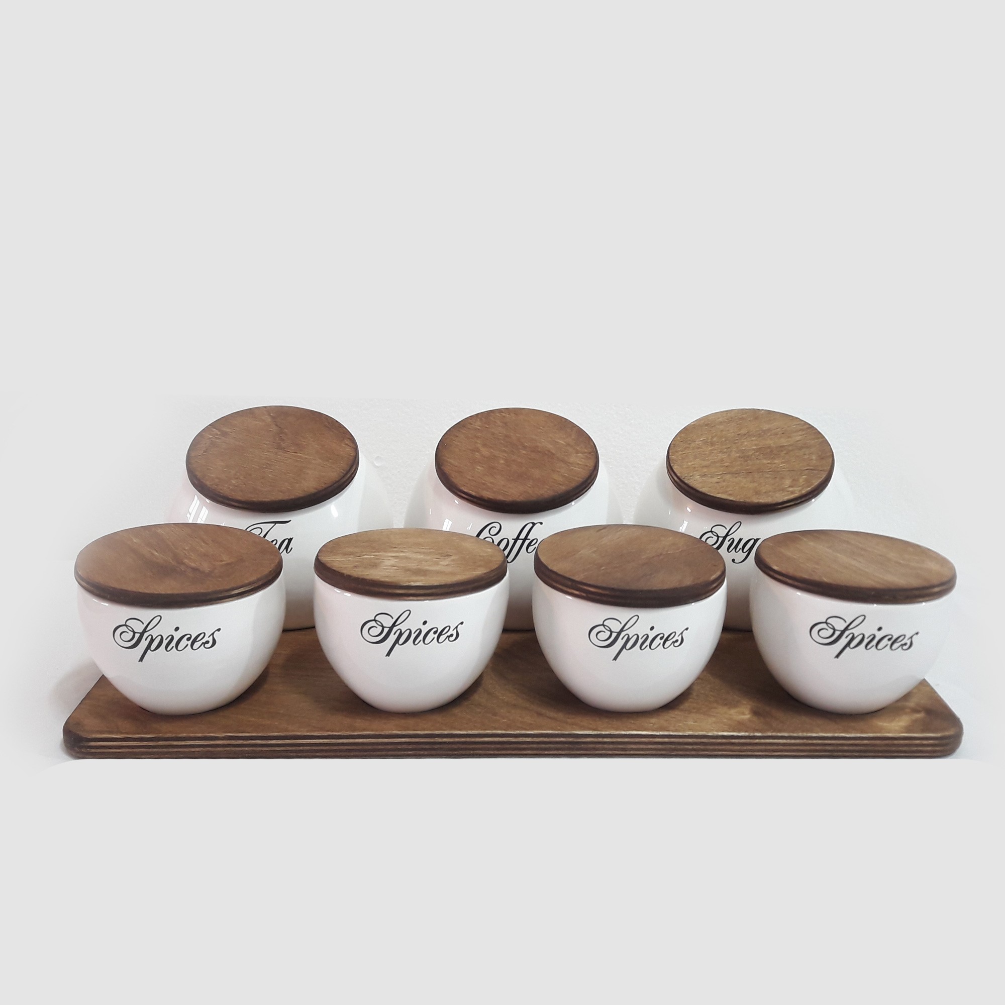 ست پاسماوری و جا ادویه ای مدل گرد سرکج درب چوبی مجموعه 7 عددی مبلمونسرا مدل 289952