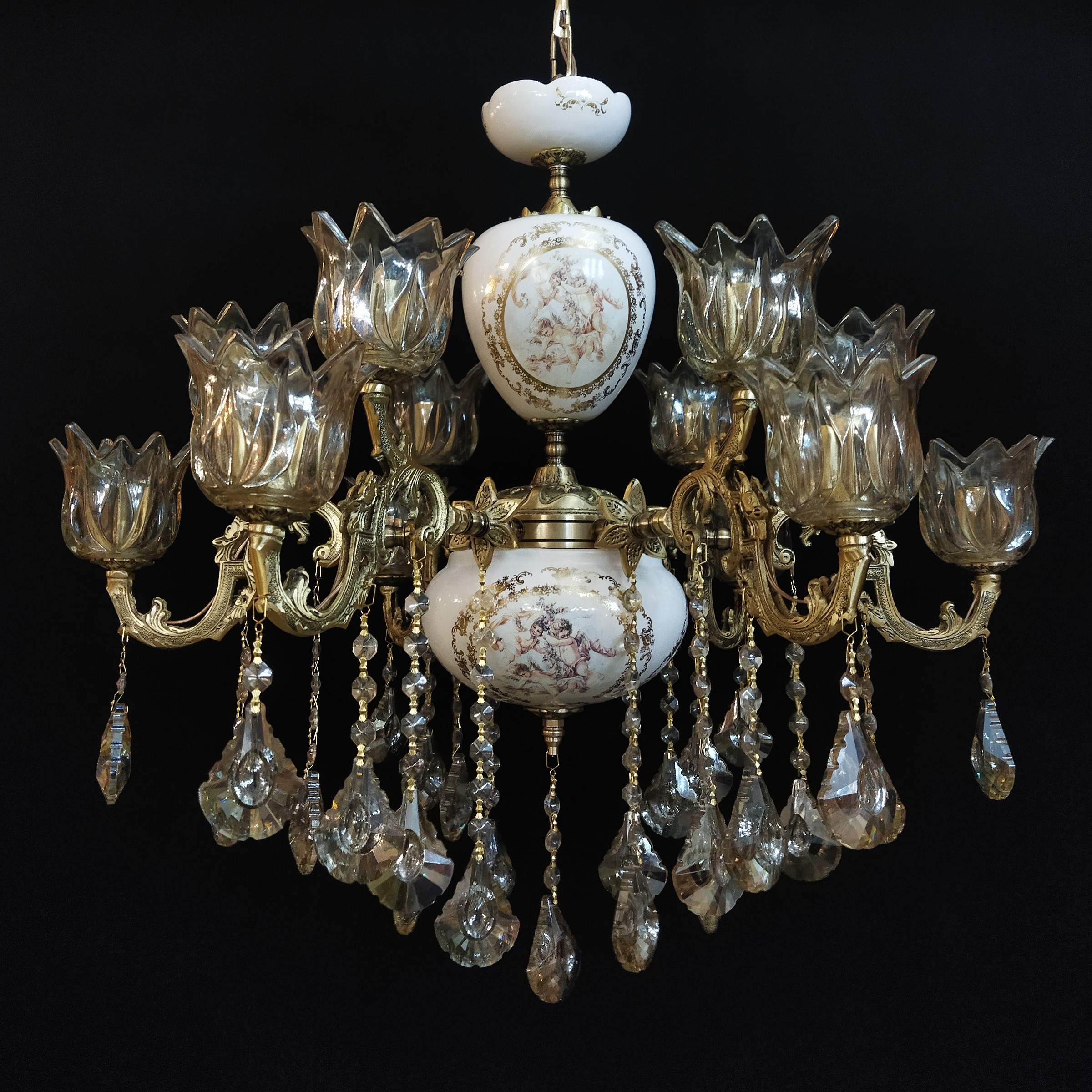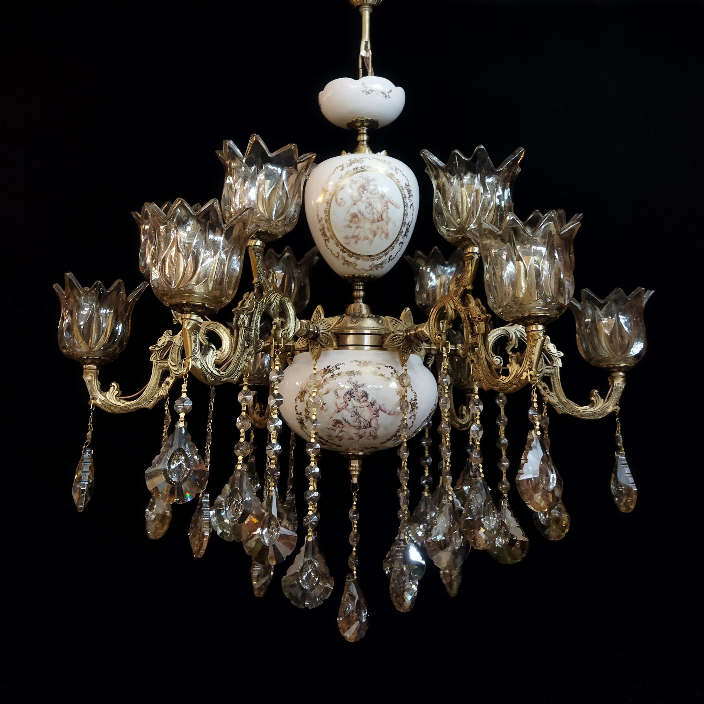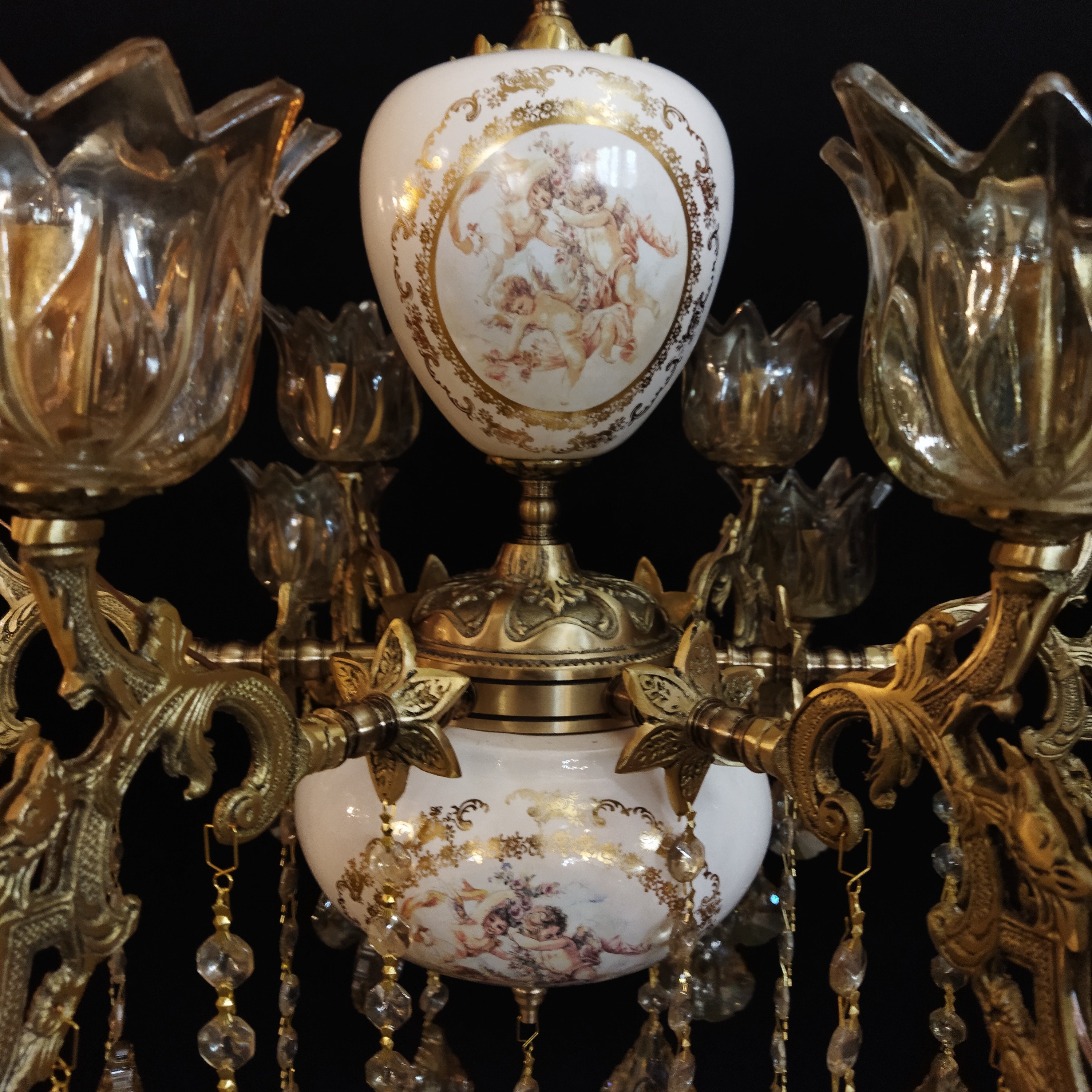 لوستر ۶ شاخه ۱۲ شعله برنز ستون سرامیک با لاله و آویز با ۱۰ سال ضمانت از تولید به مصرف ارزان تر از همه جا تولید کننده انواع لوستر شب نما را به خاطر بسپارید کیفیت اتفاقی نیست