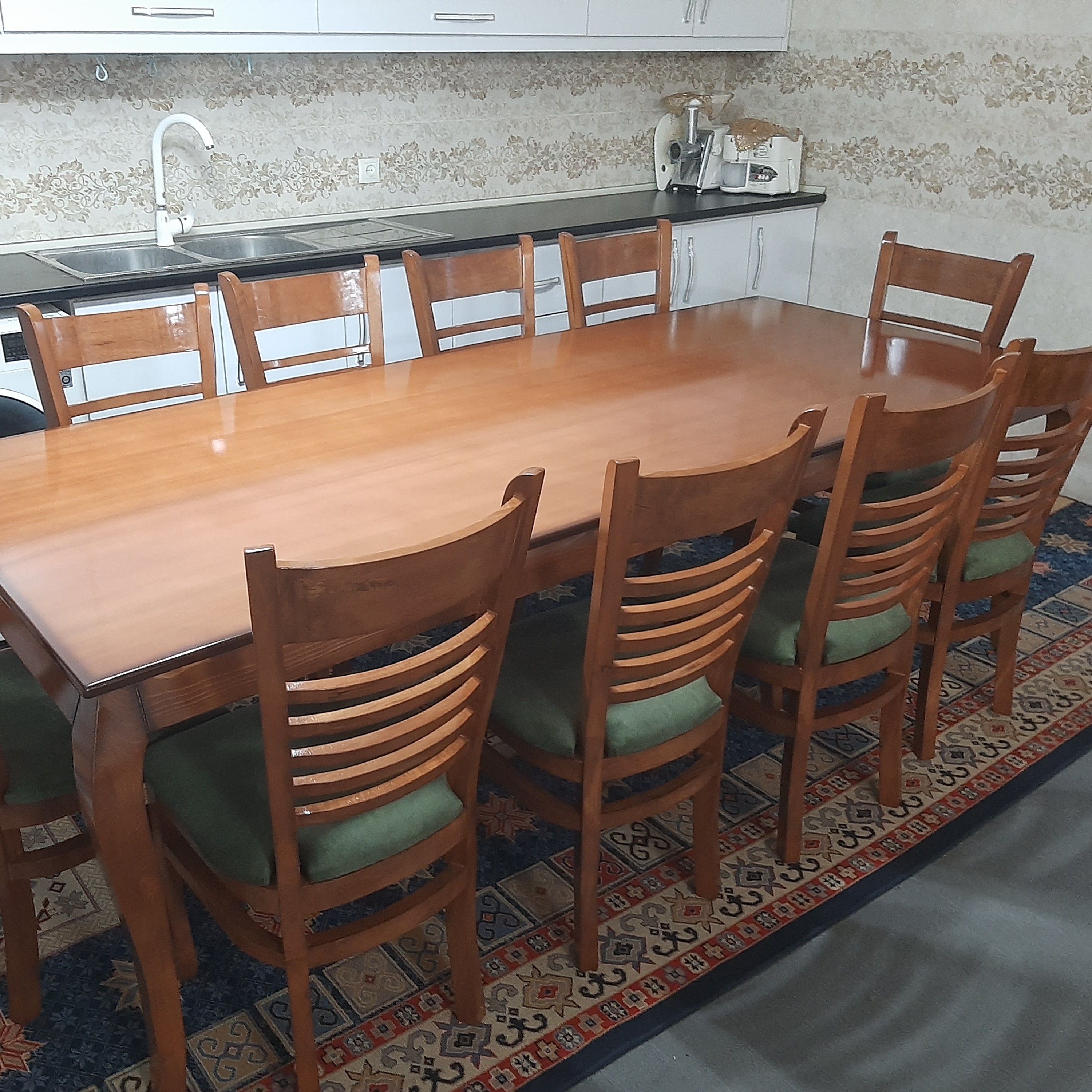 میز ناهارخوری مدل لهستانی هشت نفره 1. جنس صندلی توسکاوراش 2.جنس میز روس 3.رنگ قهوهای پلی استر براق ضد آب 4.پارچه و ضدلک و قابل شستشو 5.رنگ صندلی و نوع پارچه به سلیقه مشتری 6.ارسال محصول به صورت وباربری