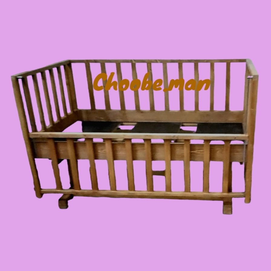 تخت خواب گهواره ای نوزاد و کودک تمام چوب، تخت ننویی مناسب تشک 70-130 مبلمونسرا مدل 225134