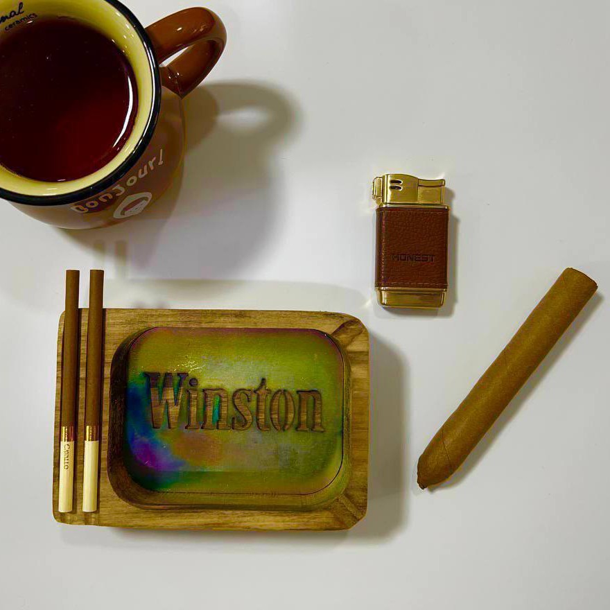 زیرسیگاری چوبی فلزی زیبا طرح winston وmarlboroو لاکچری مناسب روز مرد مبلمونسرا مدل 279365