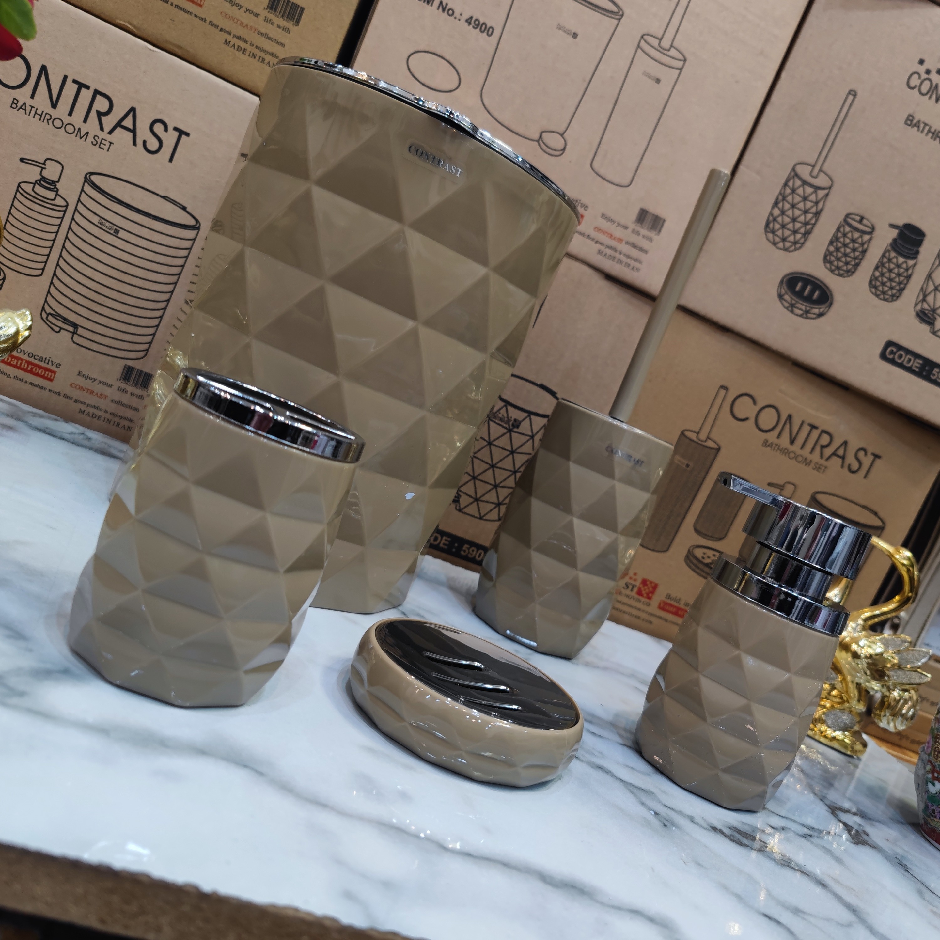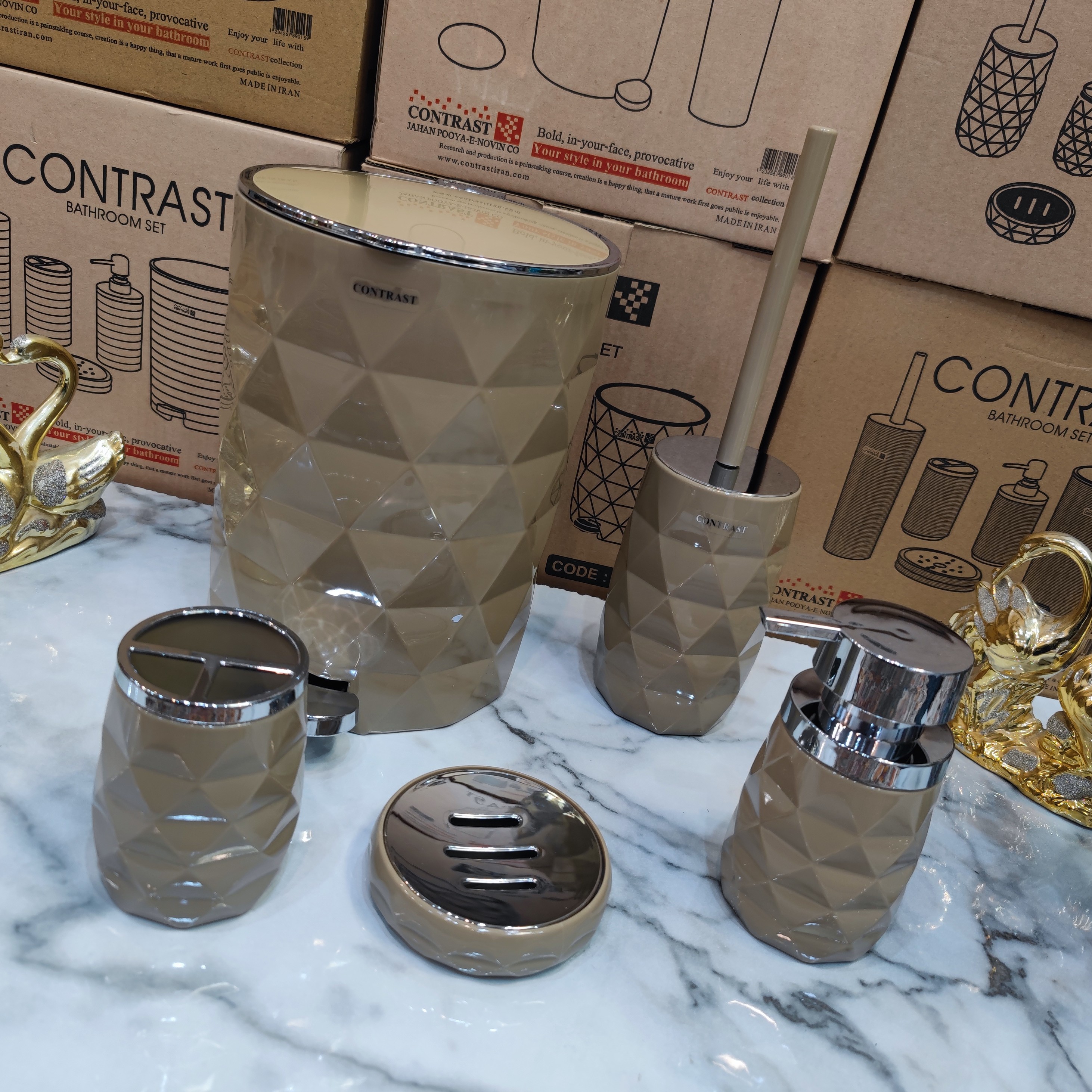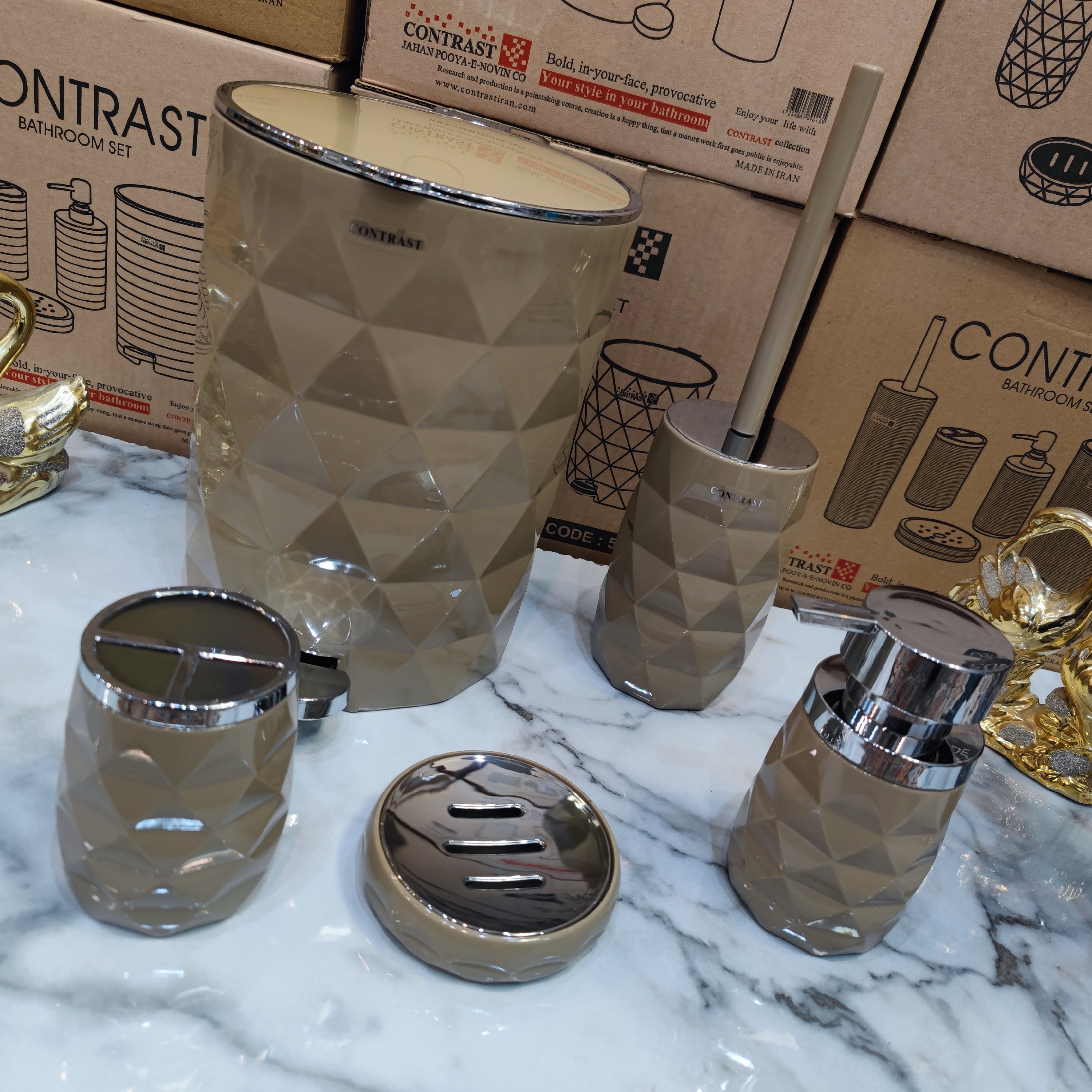 ست سرویس بهداشتی 5 پارچه آناناسی نسکافه ای کروم کنتراست