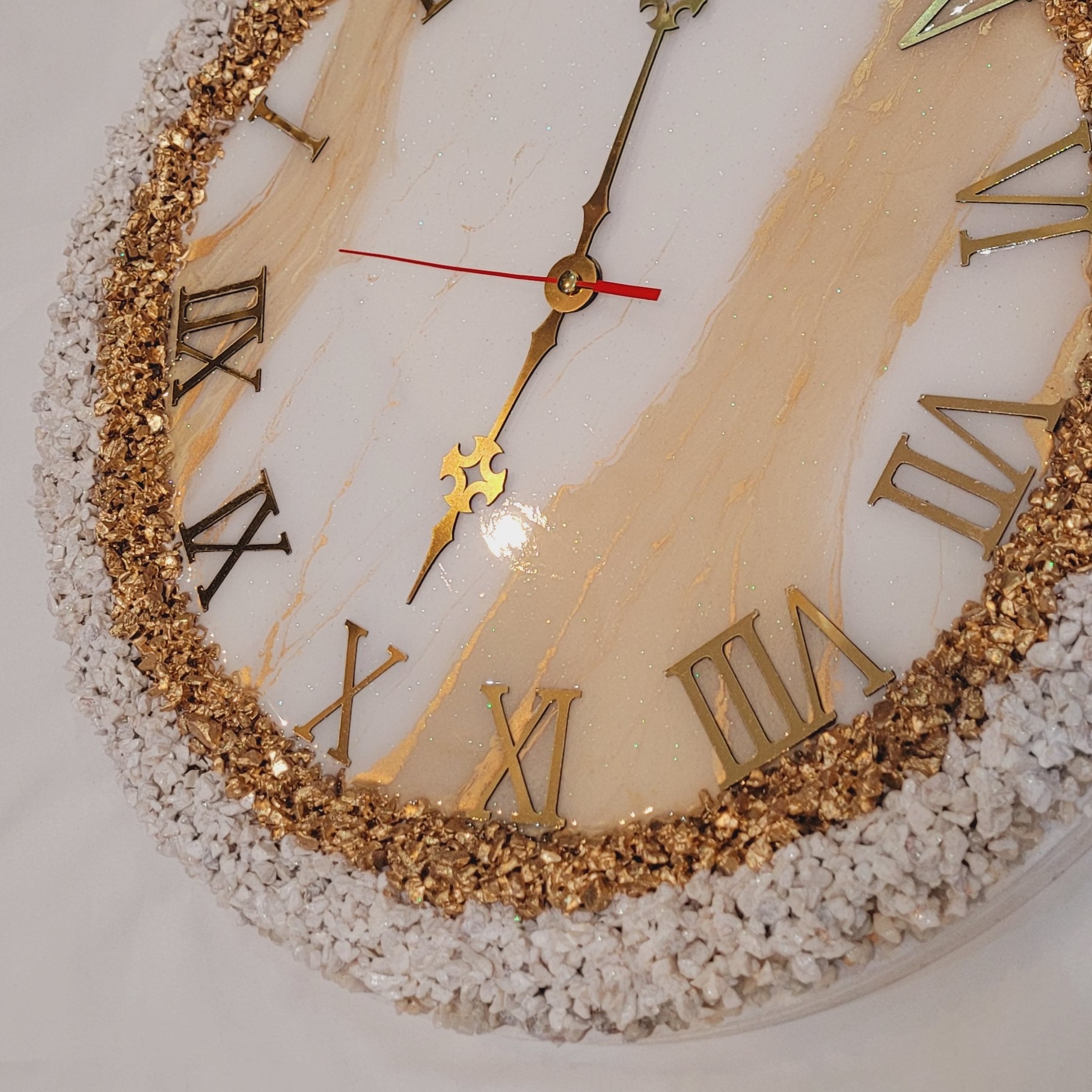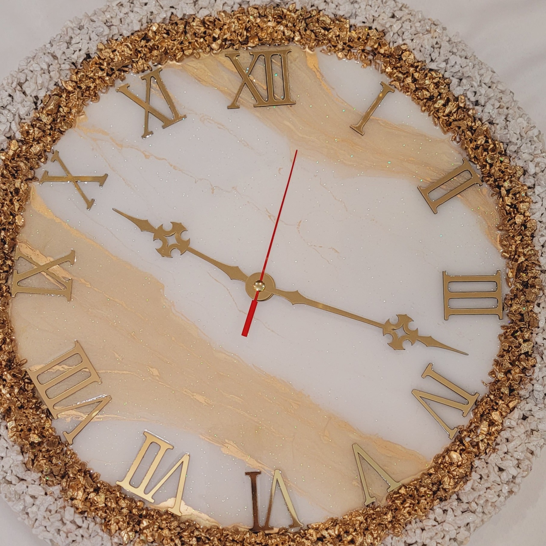 ساعت دیواری رزینی کار شده با سنگهای طبیعی .در ابعاد ۴۵ سانت .قابل اجرا در رنگ و طرح دلخواه