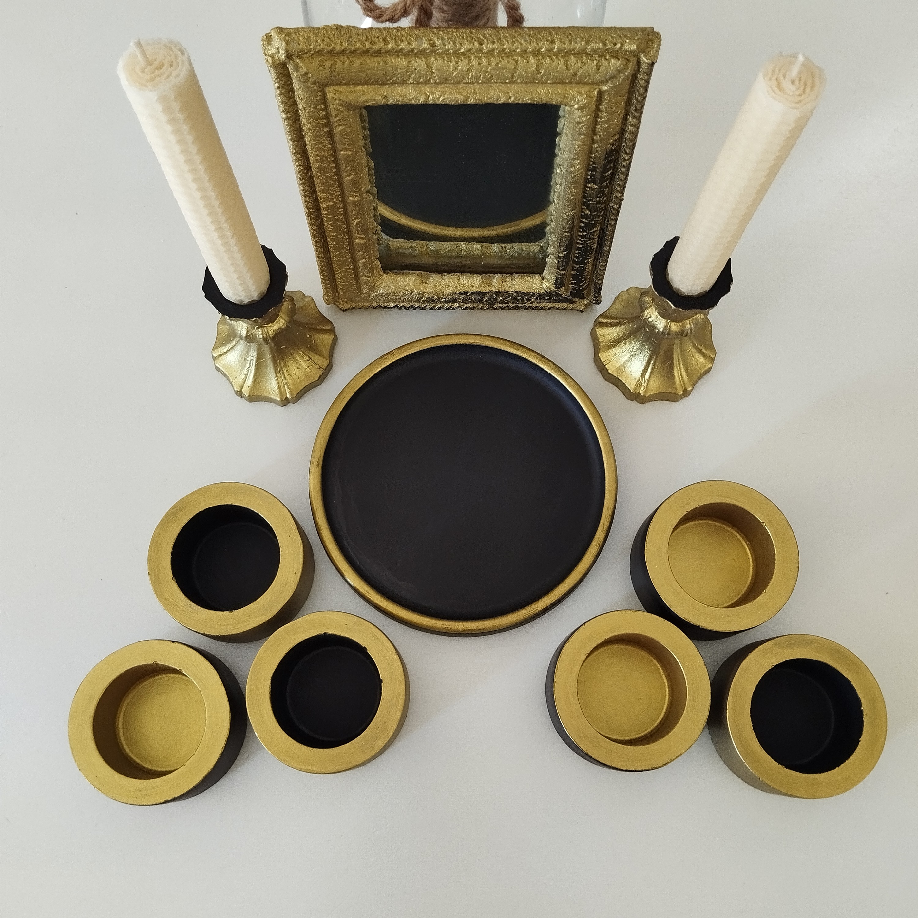 فروش ست هفتسین به صورت عمده شامل 6عدد ظرف هفت سین+ظرف سبزه وقاب آینه و شمعدان قابل سفارش در رنگ مد نظر شما همه کارا با دقت و ظرافت تولید و به صورت دستی رنگ آمیزی شده هر کدوم 3تا 4دور تمیز رنگ شده تا اصلا رد قلمو روش دیده نشه