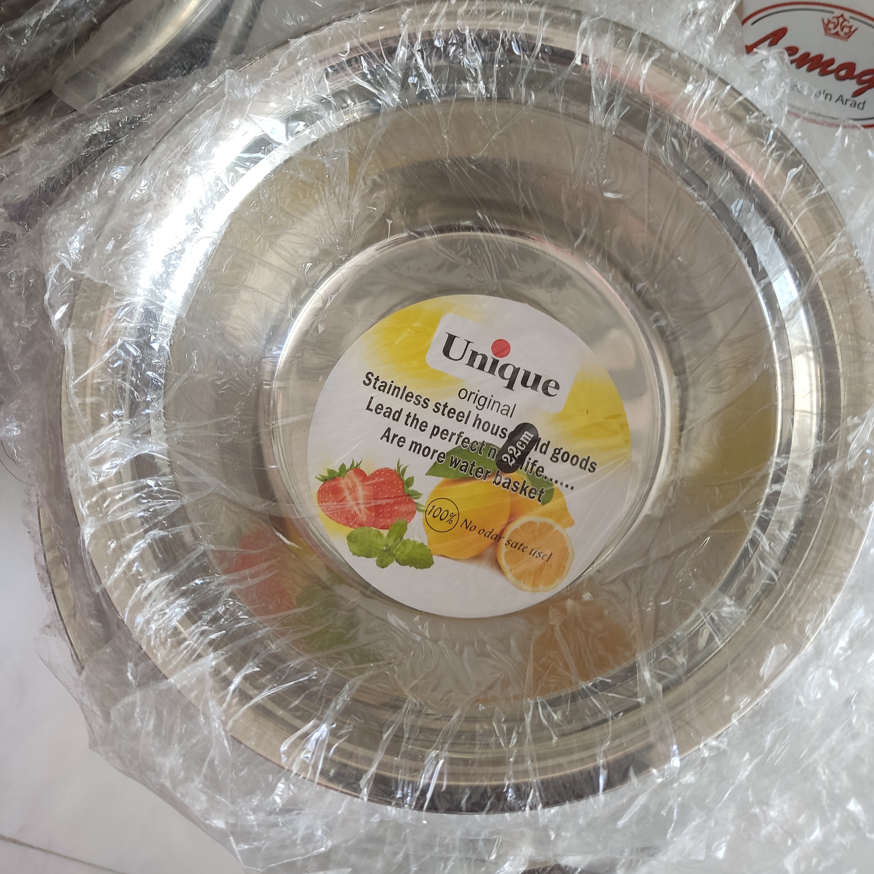 محصول شامل یک عدد آبکش و یک عدد لگن استیل سایز 22 می باشد اندازه لبه تا لبه 22 سانت یونیک حک شده