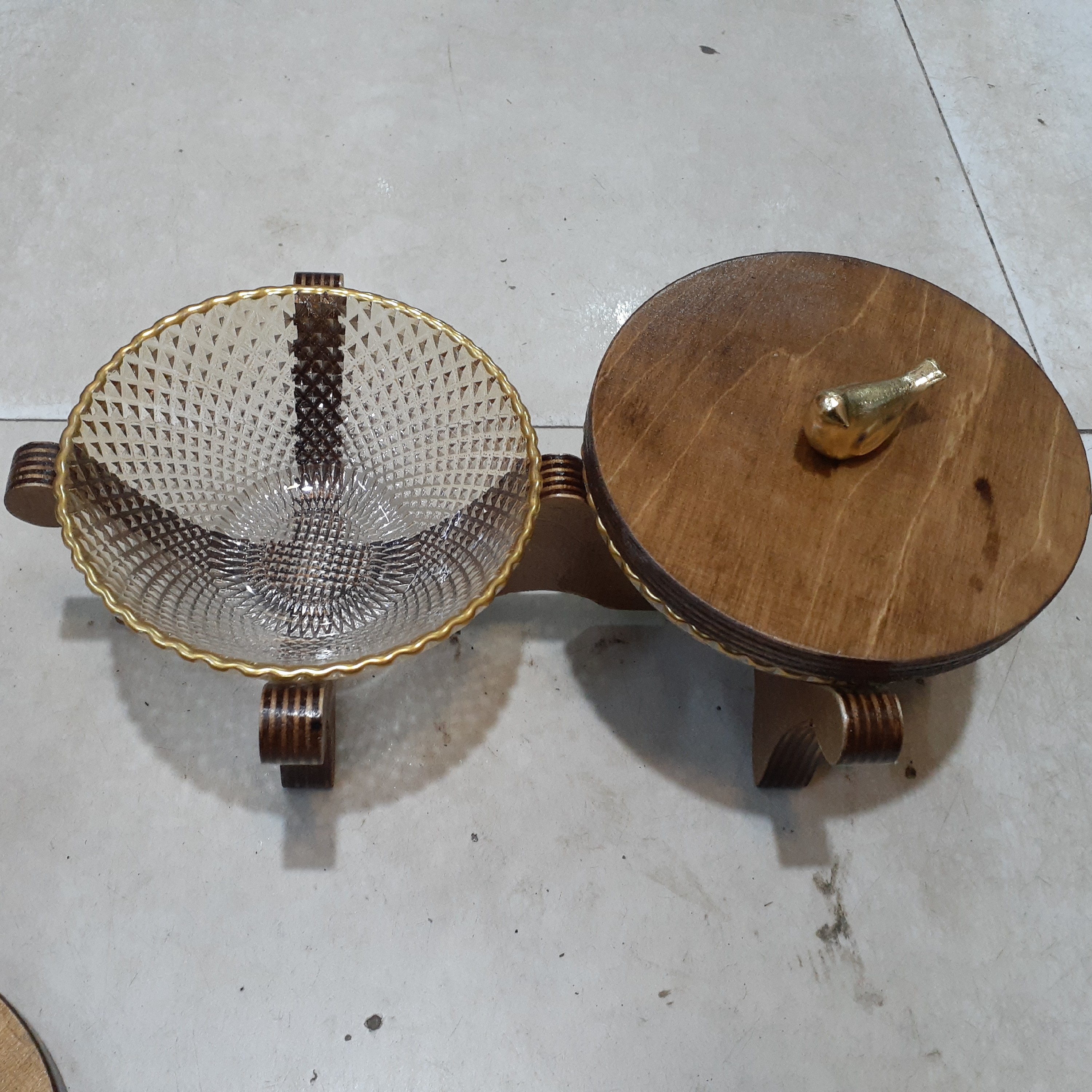 شکلات خوری و اجیل خوری دو قلوی چوب بلور لب طلایی با چوب روسی عایق کاری شده با کیفیت صادراتی سایز بزرگ مبلمونسرا مدل 296586