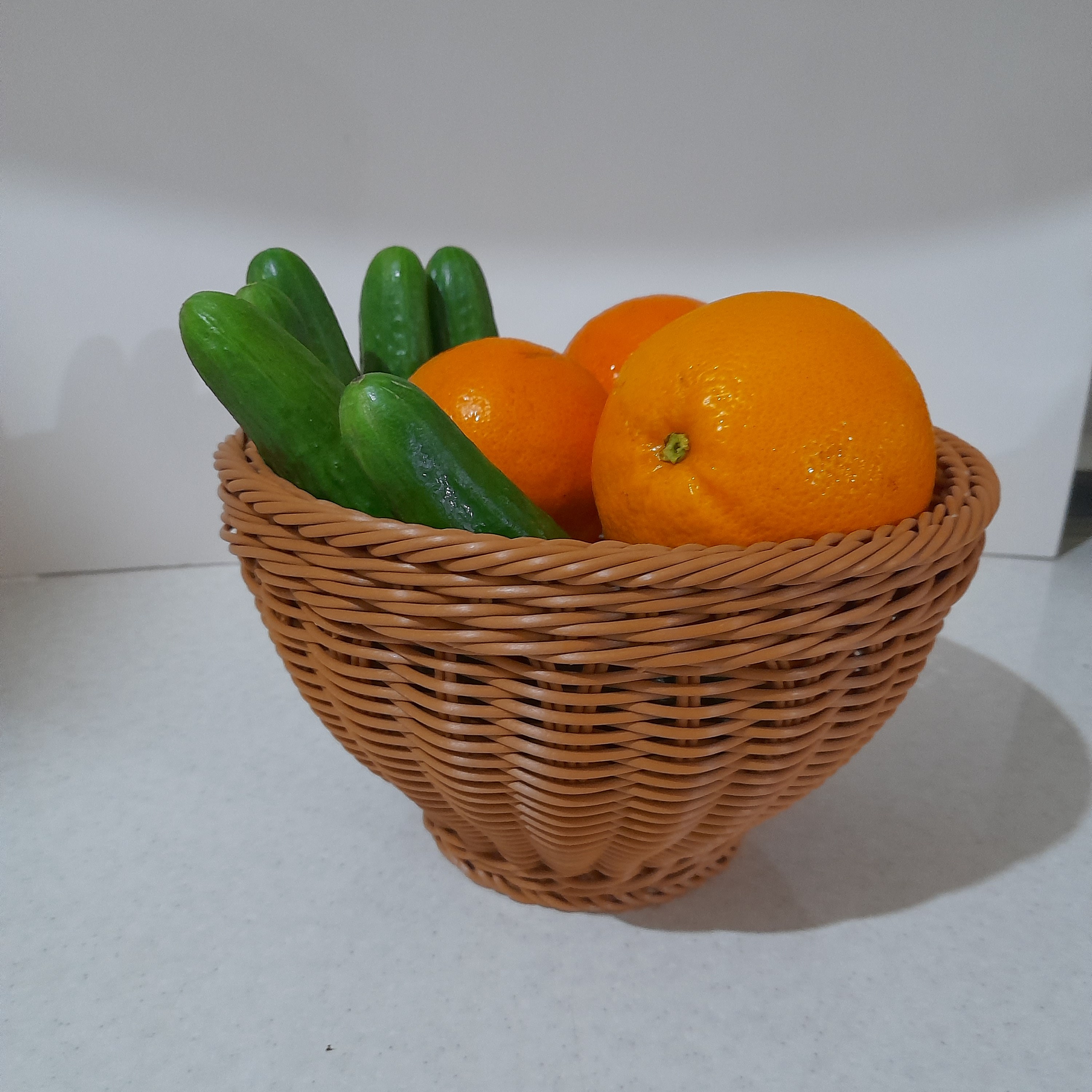 سبد میوه و آبکش سبزی کاهو ومیوه متوسط در سه رنگ خردلی نسکافه ای وقهوه ای مبلمونسرا مدل 289354