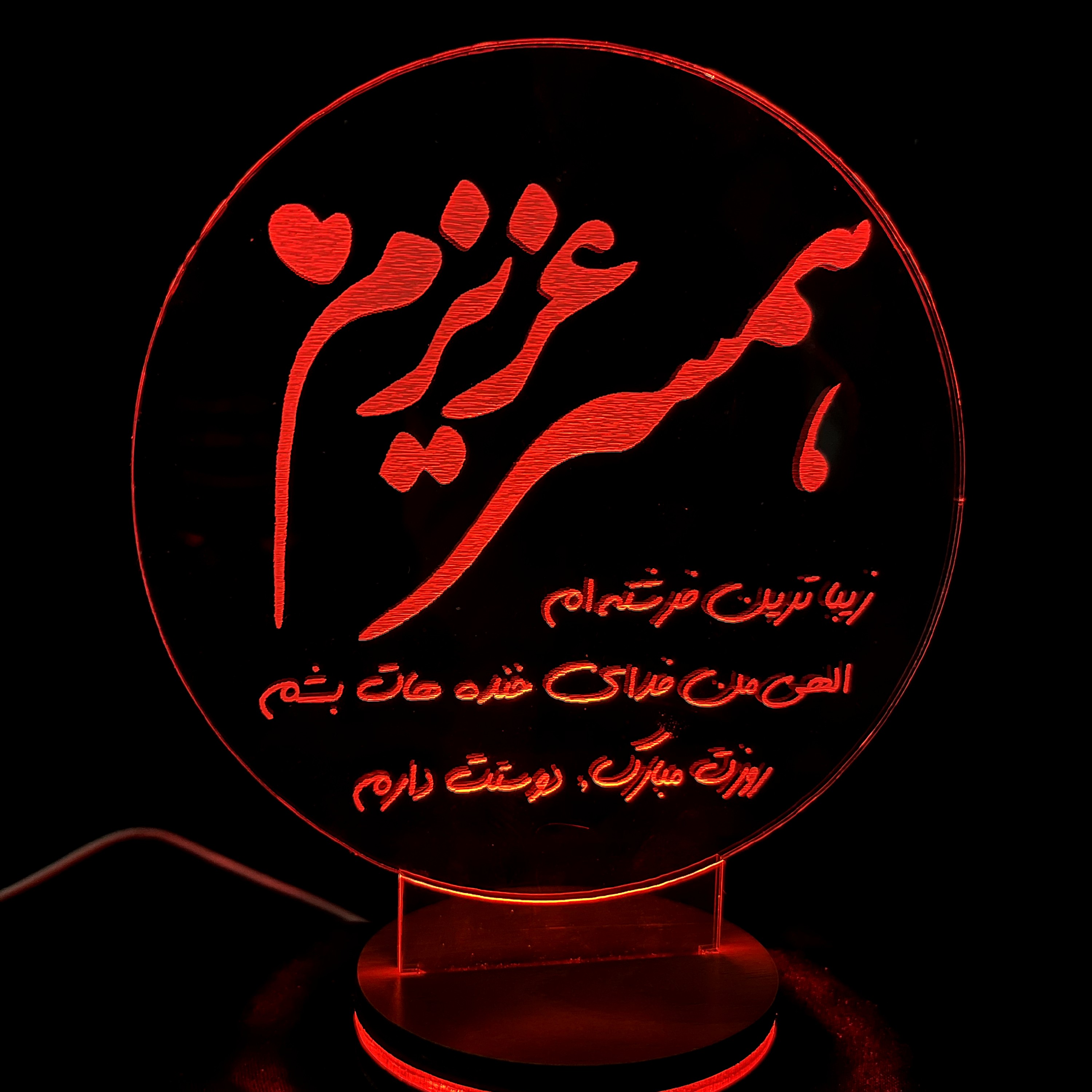 تندیس نوری همسر عزیزم روزت مبارک چراغ خواب سه بعدی تبریک روز مرد ، روز زن مبلمونسرا مدل 230378