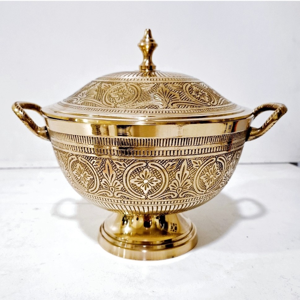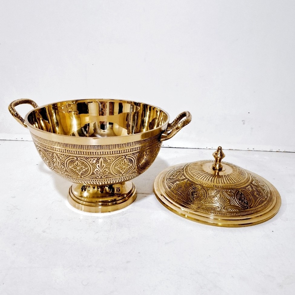 شکلات خوری برنجی هندی یا آجیل خوری برنجی هندی سایز بزرگ با قطر 20 سانت مدل سلطنتی با کیفیت بالا ظروف پذیرایی ظروف برنجی مبلمونسرا مدل 296557