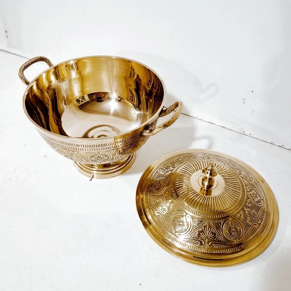 شکلات خوری و یا آجیل خوری تمام برنجی ساخت هندوستان مدل سلطنتی سایز بزرگ با قطر دهانه 20 سانتیمتر با سطح کیفیتی درجه یک و سنگین بسیار زیبا و مناسب استفاده دائم و قابل شستشو بدون تغییر رنگ