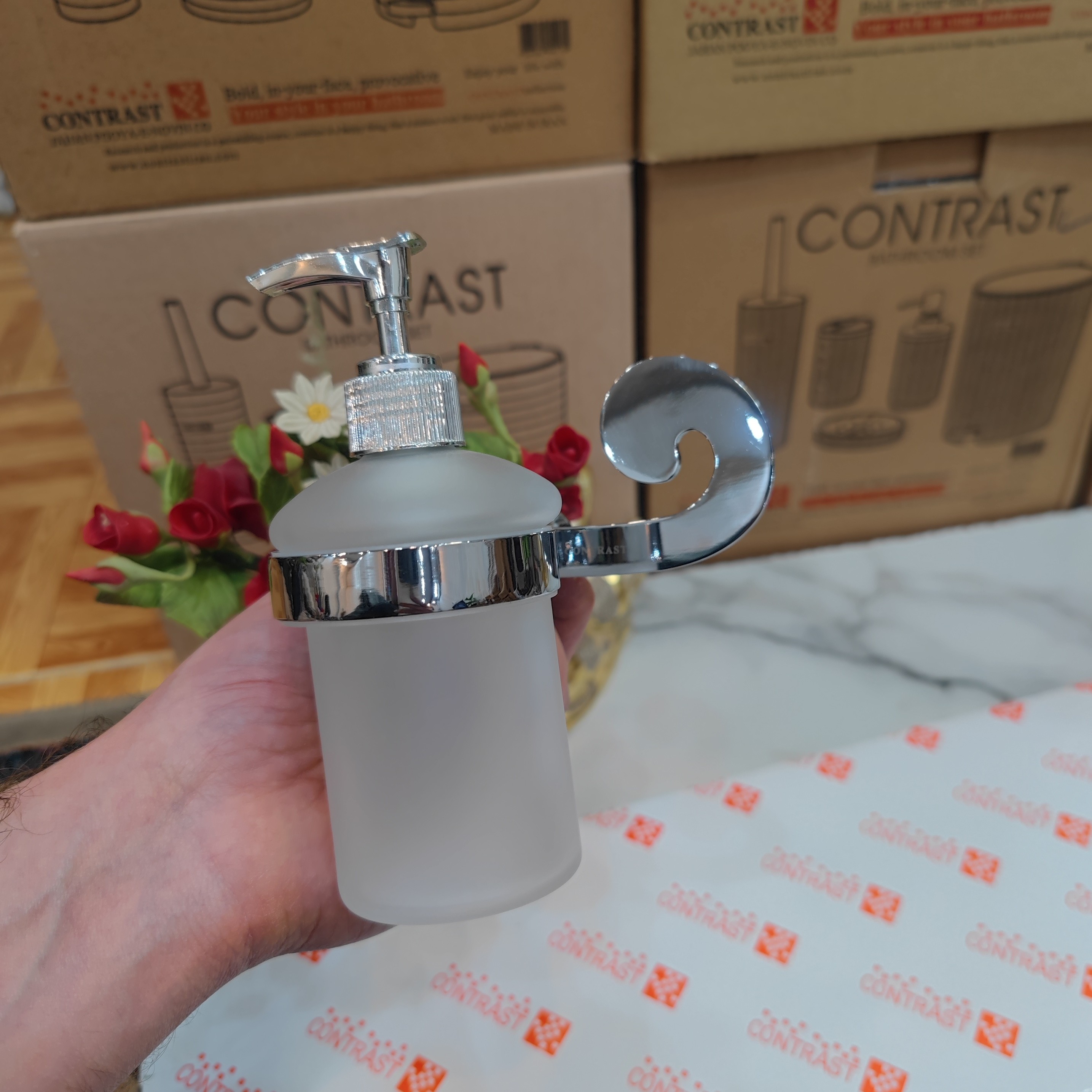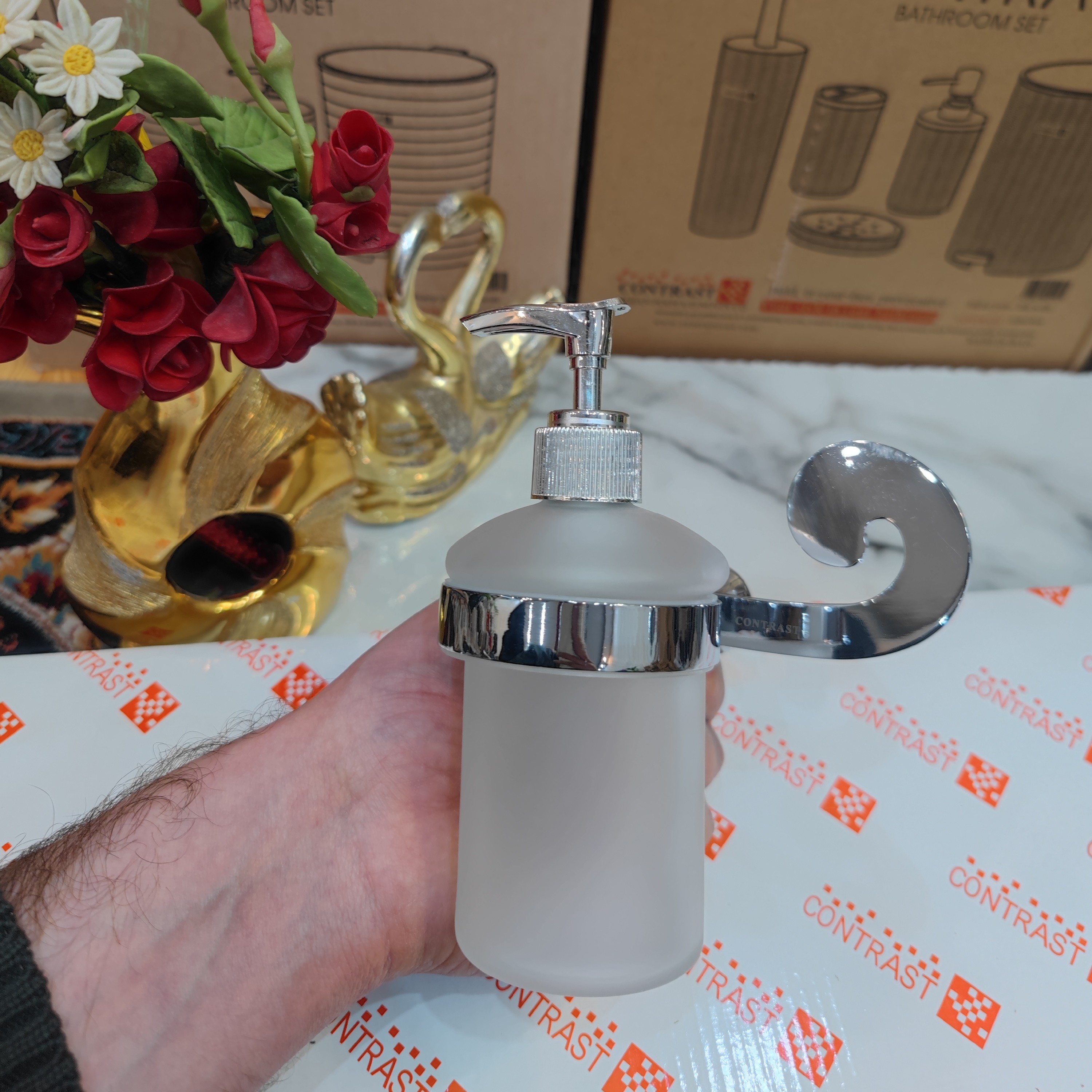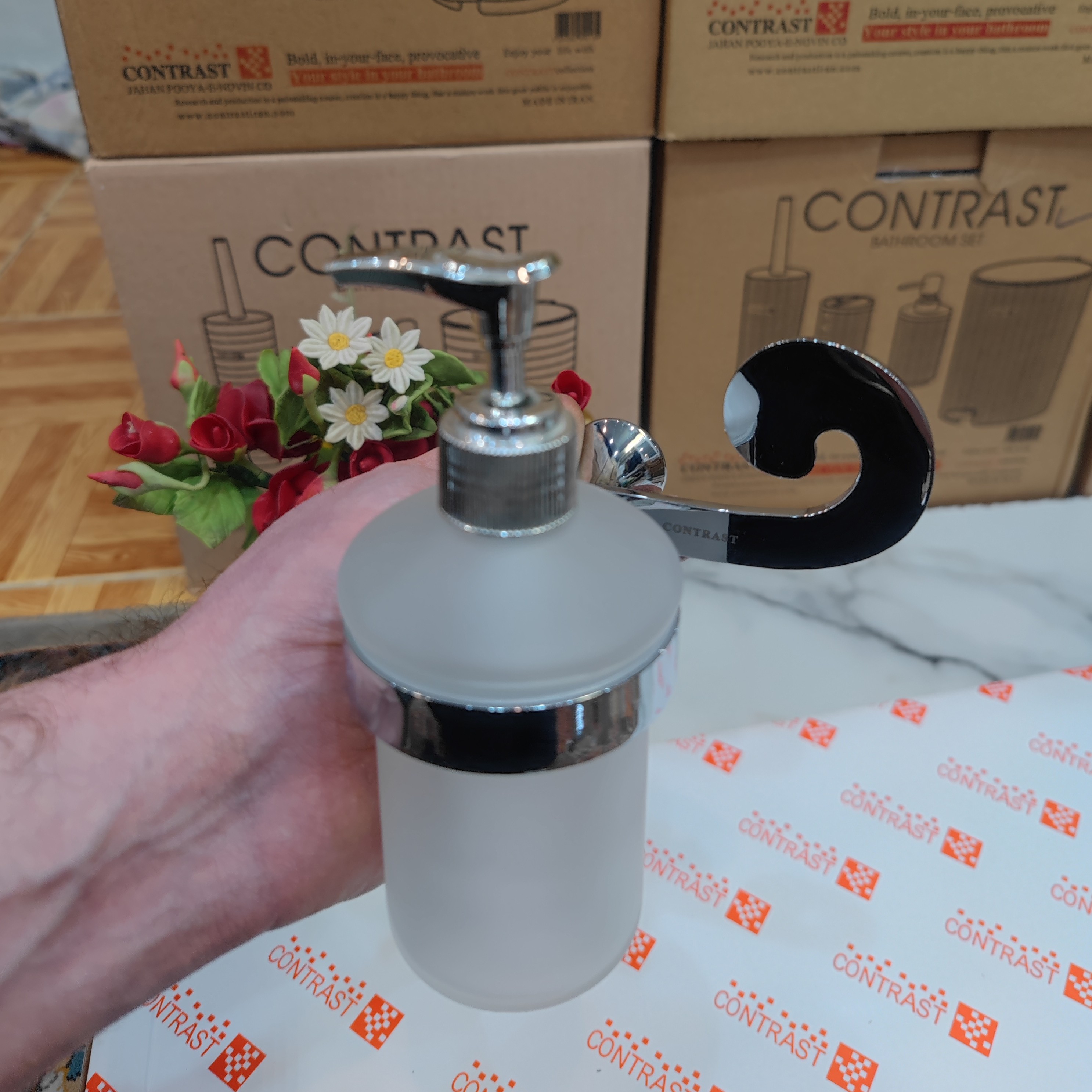 جای مایع دیواری وارداتی برند کنتراست رنگ زیبای کروم براق نو آکبند