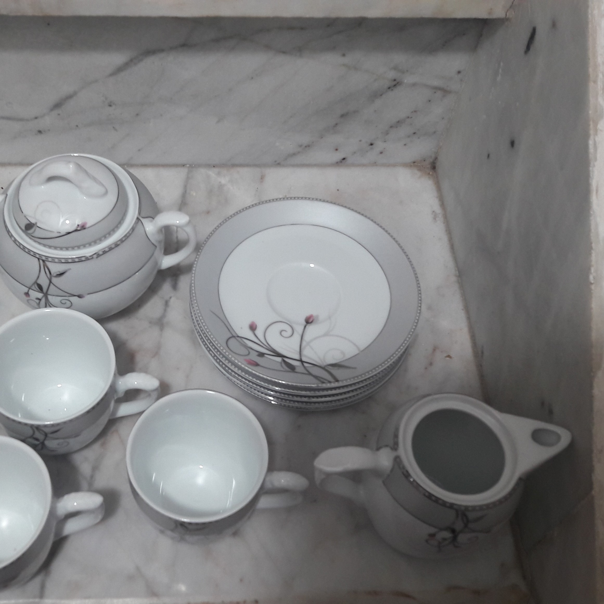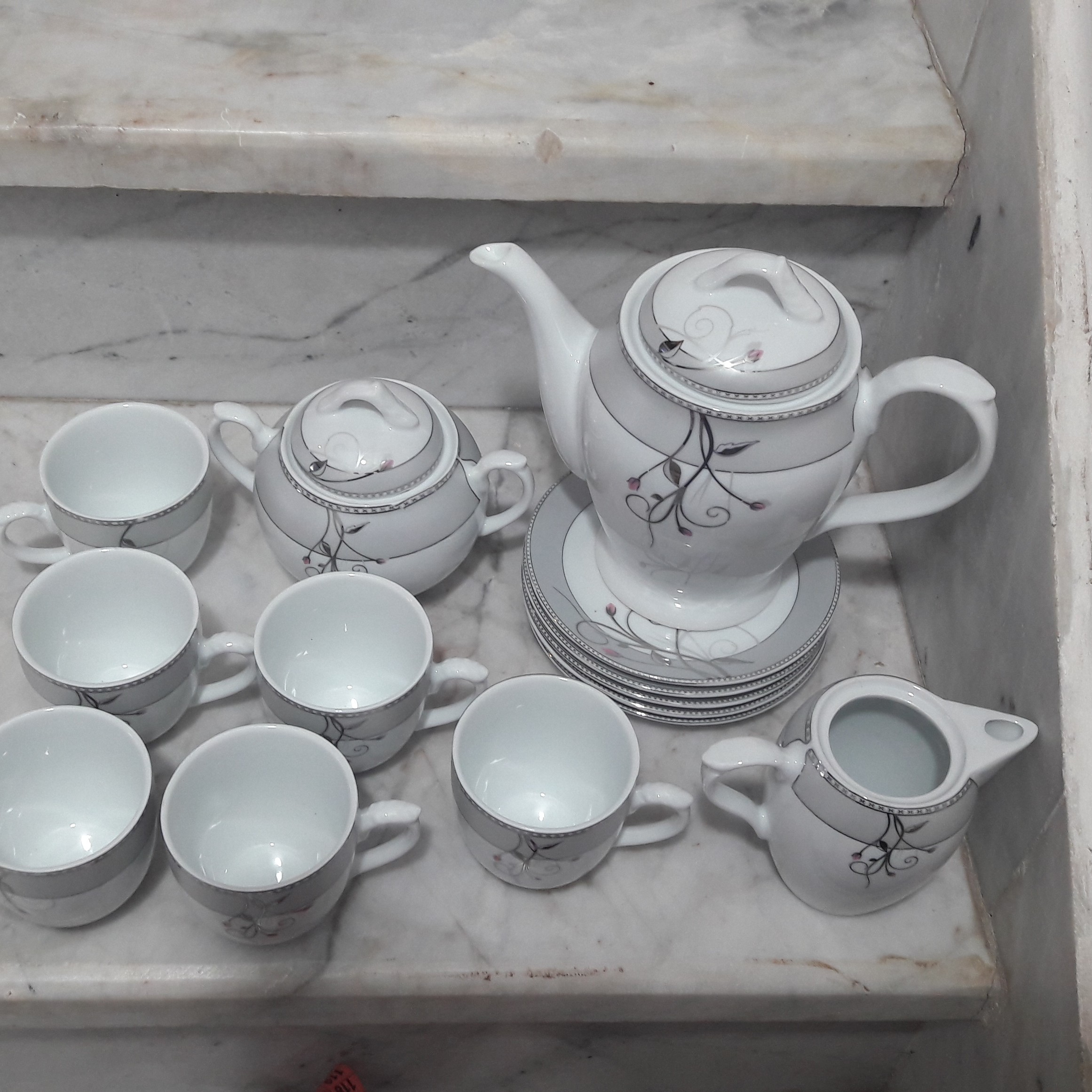 سرویس صبحانه خوری چینی گل صورتی پردیس چینی چای خوری بسیار زیبا و مناسب پذیرایی یه نعلبکی تو بار شکسته بدون جعبه قیمت زیر قیمت بازار شیک و زیبا