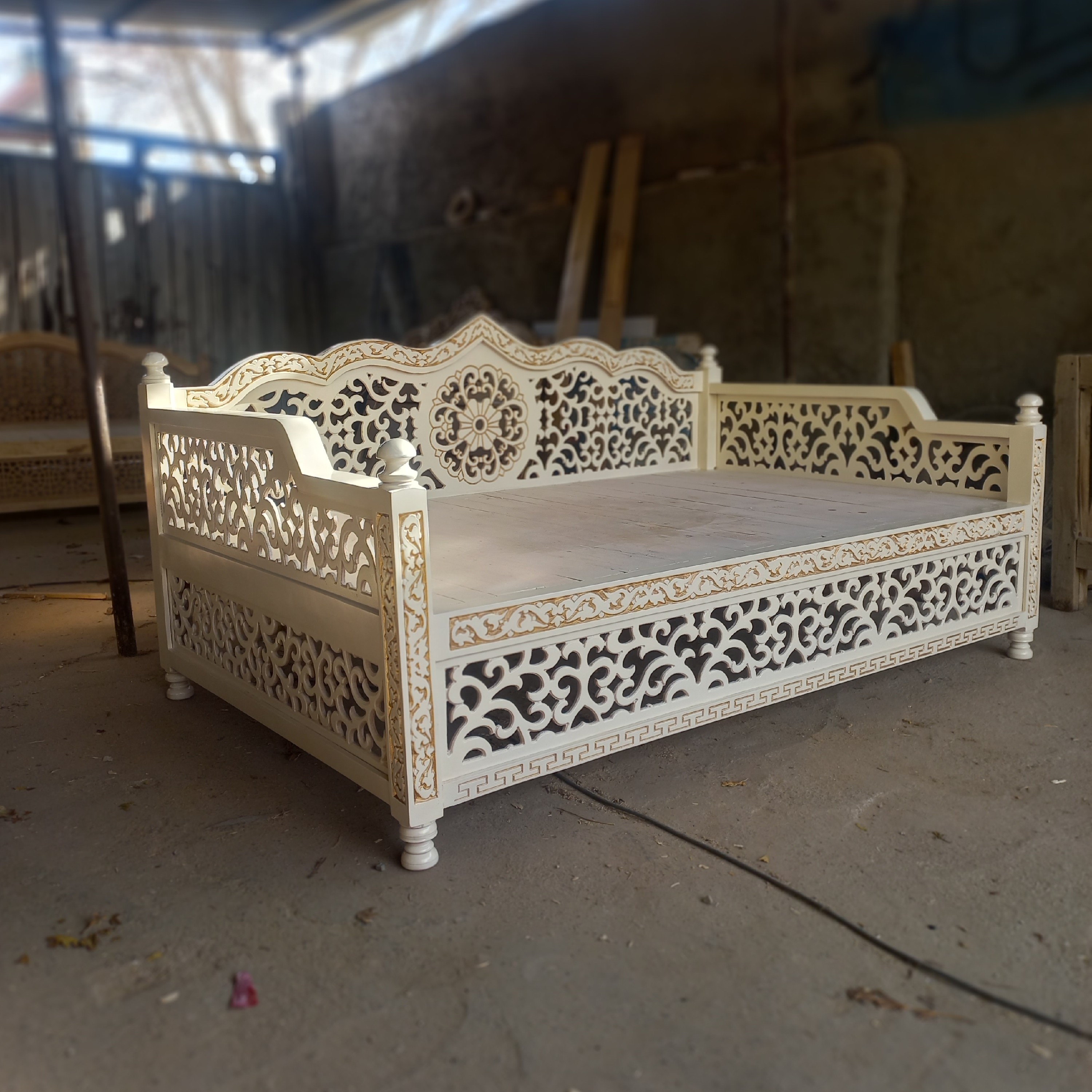 لطفا کامل مطالعه کنید 🔰تخت سنتی 🔰جنس چوب:چنار 🔰شبکه:mdf روکش دار 🔰رنگ:سفیدمنبت طلایی 🔰ابعاد:متر توجه: 1_ سفارش شما مشابه عکس است و ممکن است ذره ای با عکس داخل آگهی از لحاظ رنگ و طرح چوب متفاوت باشد. 2_ قبل از سفارش از موجود بودن و زمان آماده شدن مطلع شوید با تشکر🙏