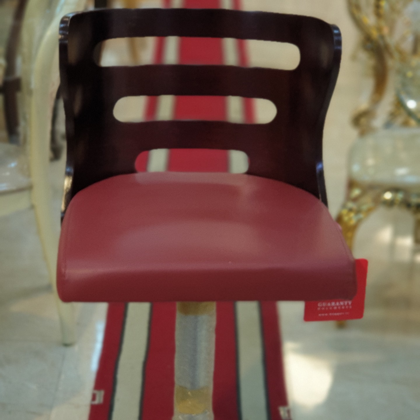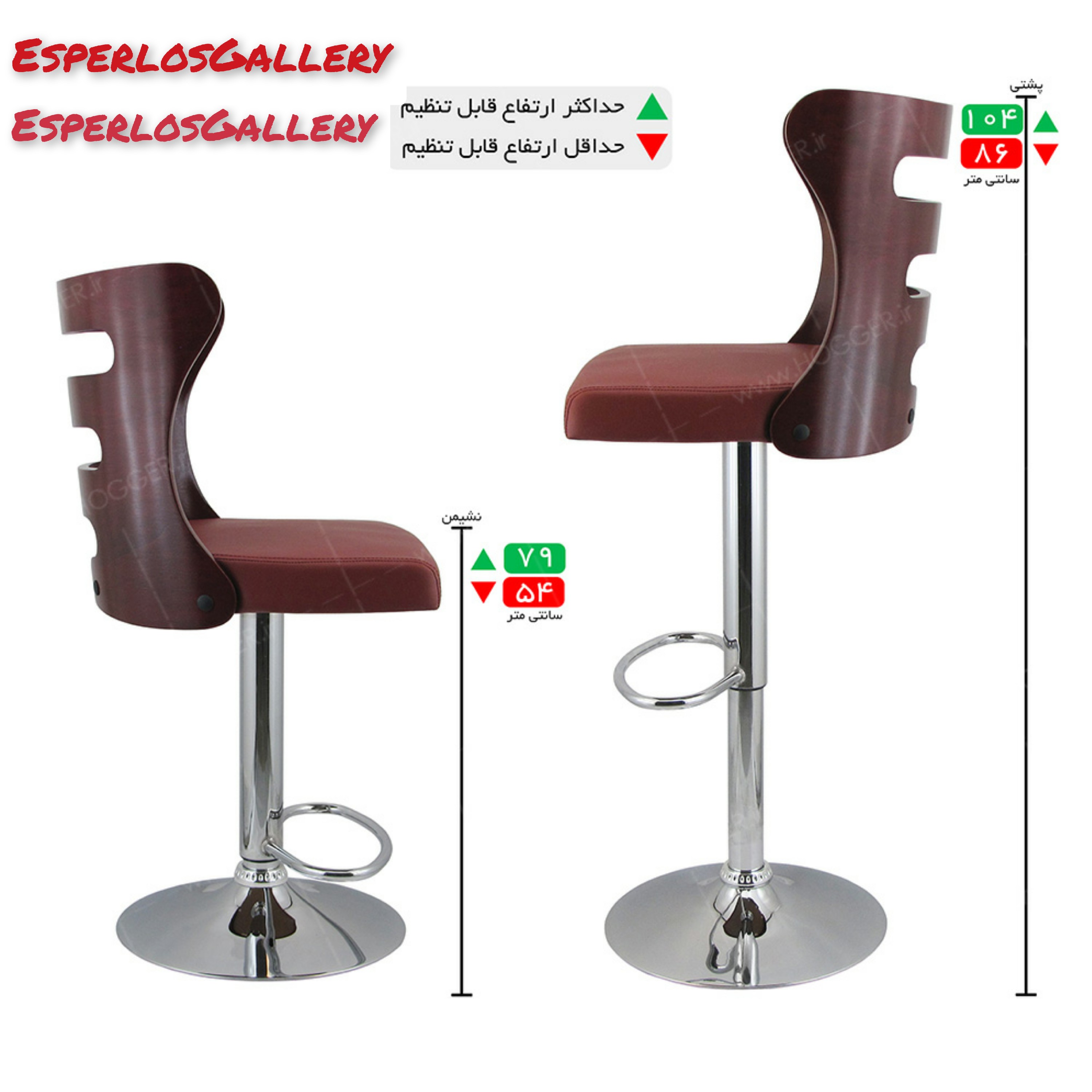 جنس فریم چوب حداقل ارتفاع 54 سانتیمتر حداکثر ارتفاع 80 سانتیمتر جنس روکش چرم مصنوعی PU امکانات قابل تنظیم قابلیت تنظیم ارتفاع ابعاد پشتی 46*42*2 سانتیمتر ابعاد کفی 43*47*5 سانتیمتر