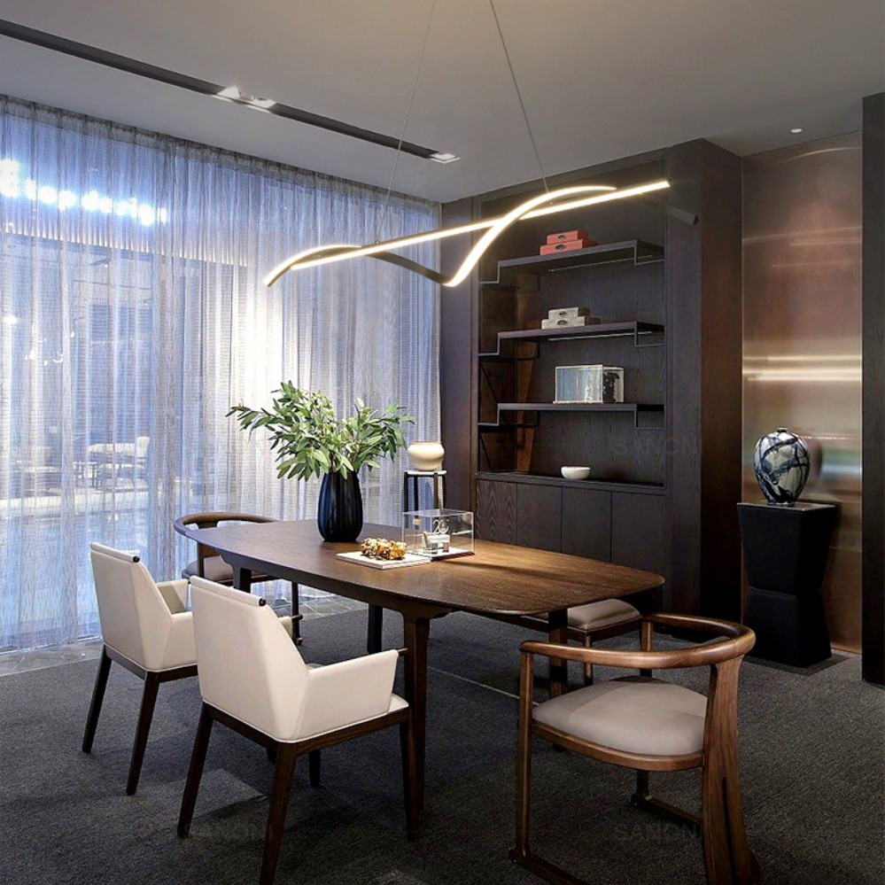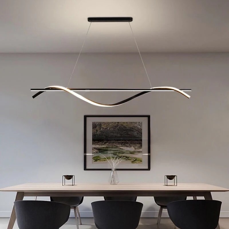 لوستر مدرن هوشمند vip سفارشی چهار حالته با ریموت و دیمر طرح موج رنگ بدنه مشکی مات مبلمونسرا مدل 244703