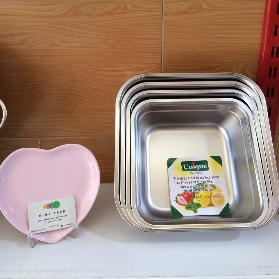 ابكش و لگن مربع رستوراني يونيك كيفيت عالي 8پارچه شامل 4 عدد آبکش و 4 عدد لگن سايز:32-30-28-26
