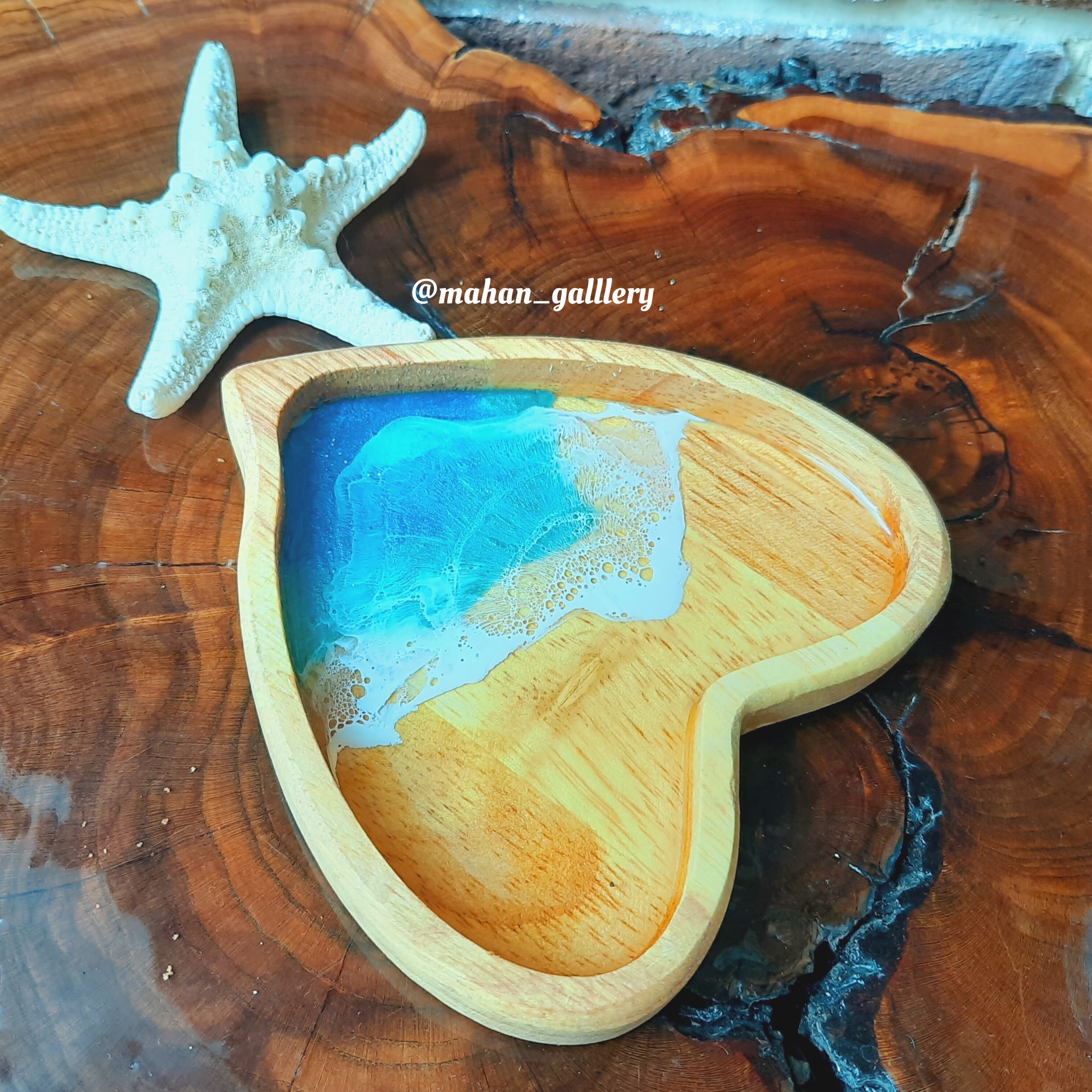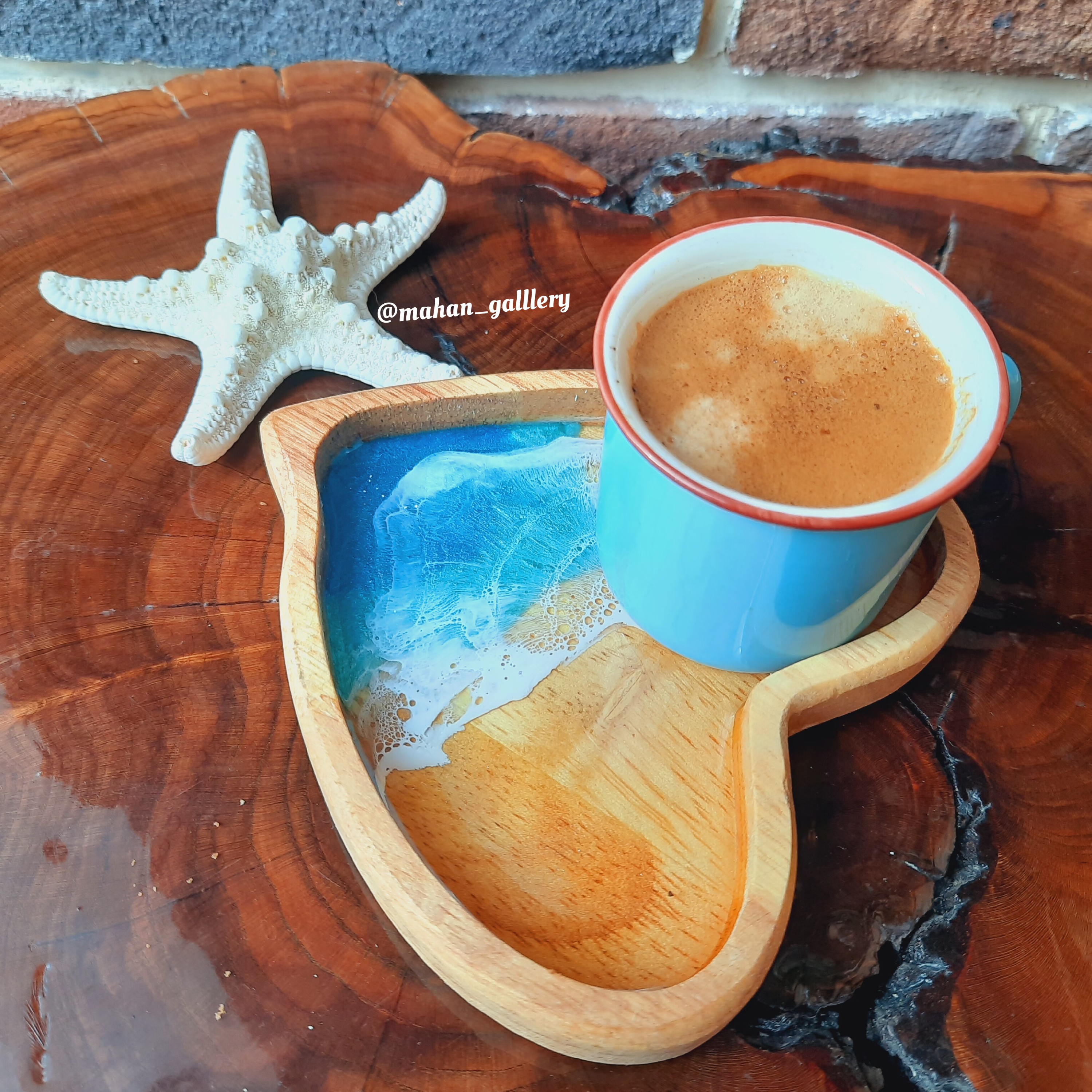 زیرلیوانی چوبی _رزینی *کار شده با رزین تکنیک دریا *مناسب برایسرو تنقلات برای یه دور همی کوچک یا قرار دادن فنجان قهوه و یا ماگ با کفی تقریبا ۹ سانت.