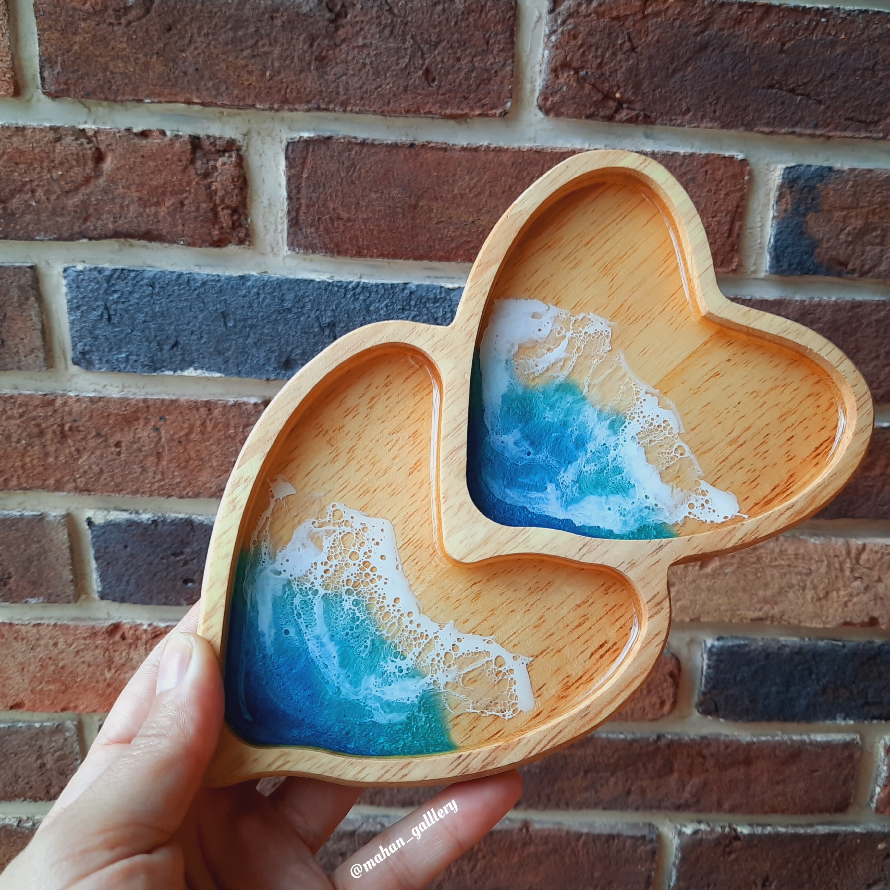 زیرلیوانی چوبی مدل قلب _دو خانه *مناسب برای سرو تنقلات و یا قردادن ماگ و فنجان قهوه و چای