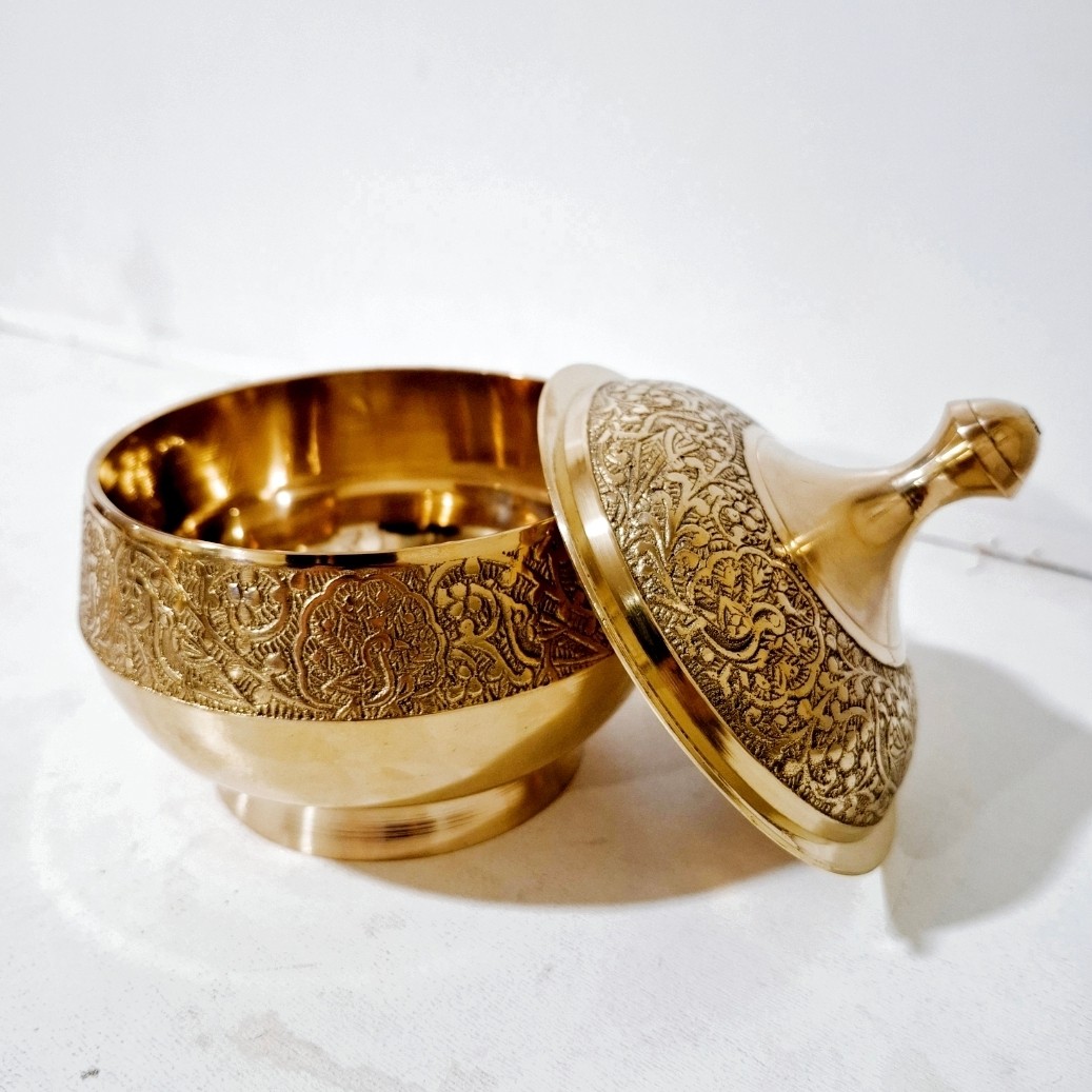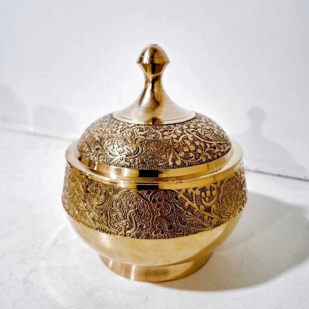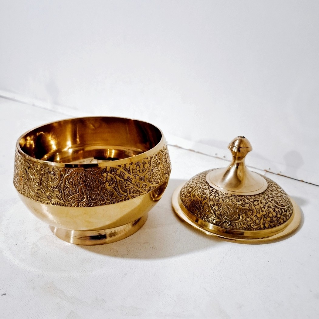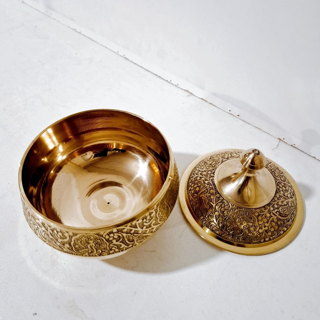 شکلات خوری برنجی هندی یا آجیل خوری یا قندان برنجی قطر 11 سانت با طرح طاووس شکلات خوری برنزی مناسب استفاده و قابل شستشو مبلمونسرا مدل 295913