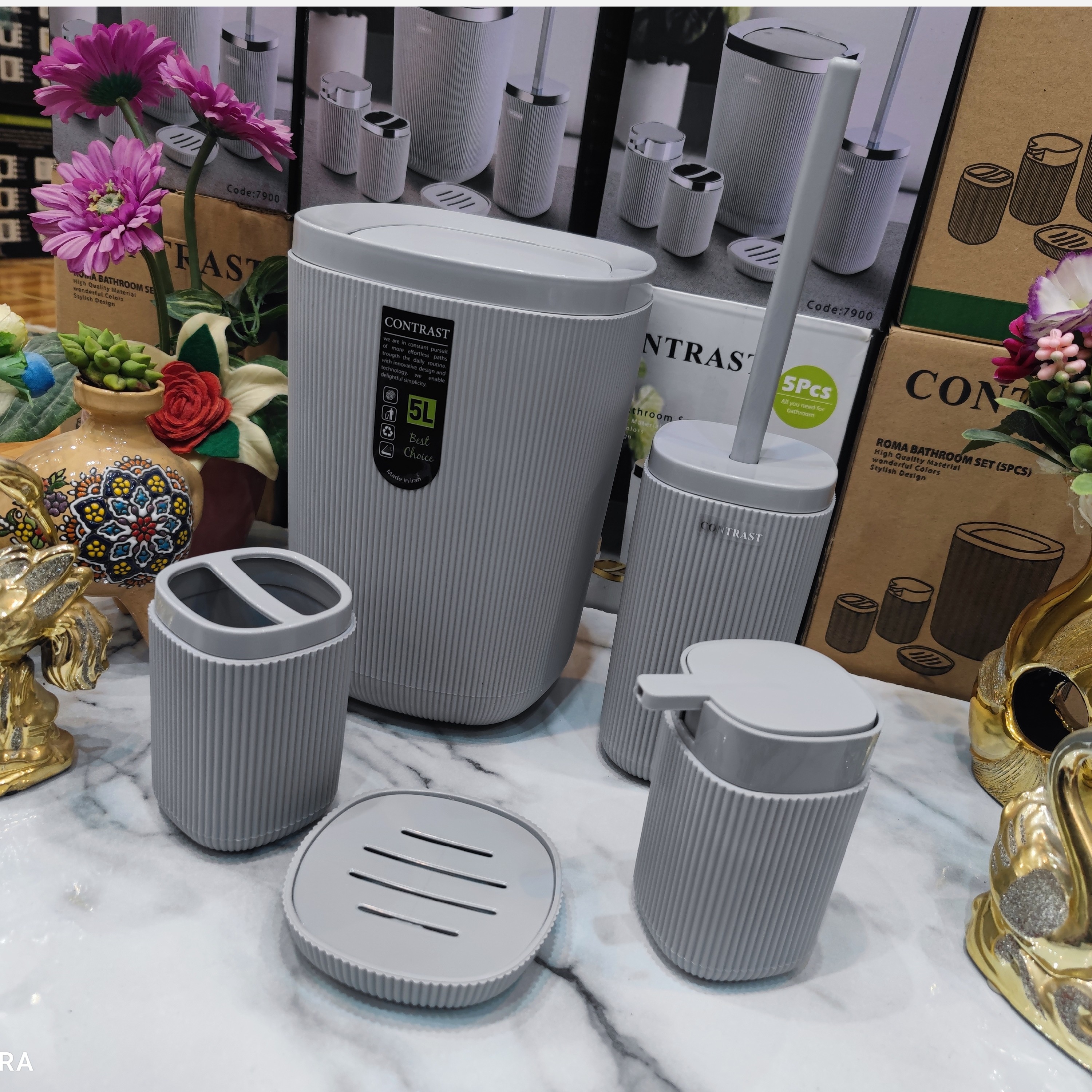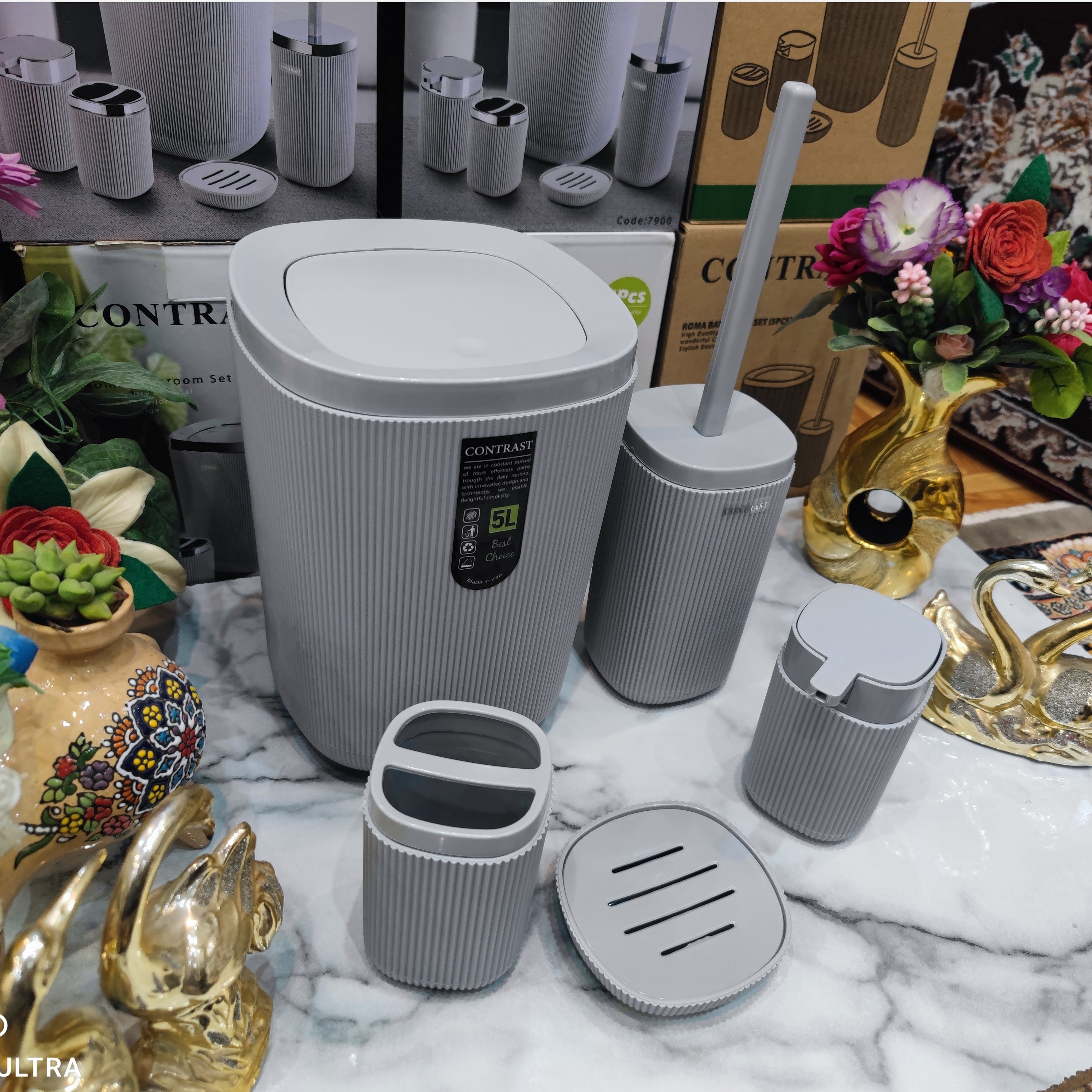 ست سرویس بهداشتی 5 پارچه طرح روما خطی رنگ زیبا و شکیل طوسی مات برند کنتراست نو آکبند طرح جدید قیمت عالی و اقتصادی مبلمونسرا مدل 264729
