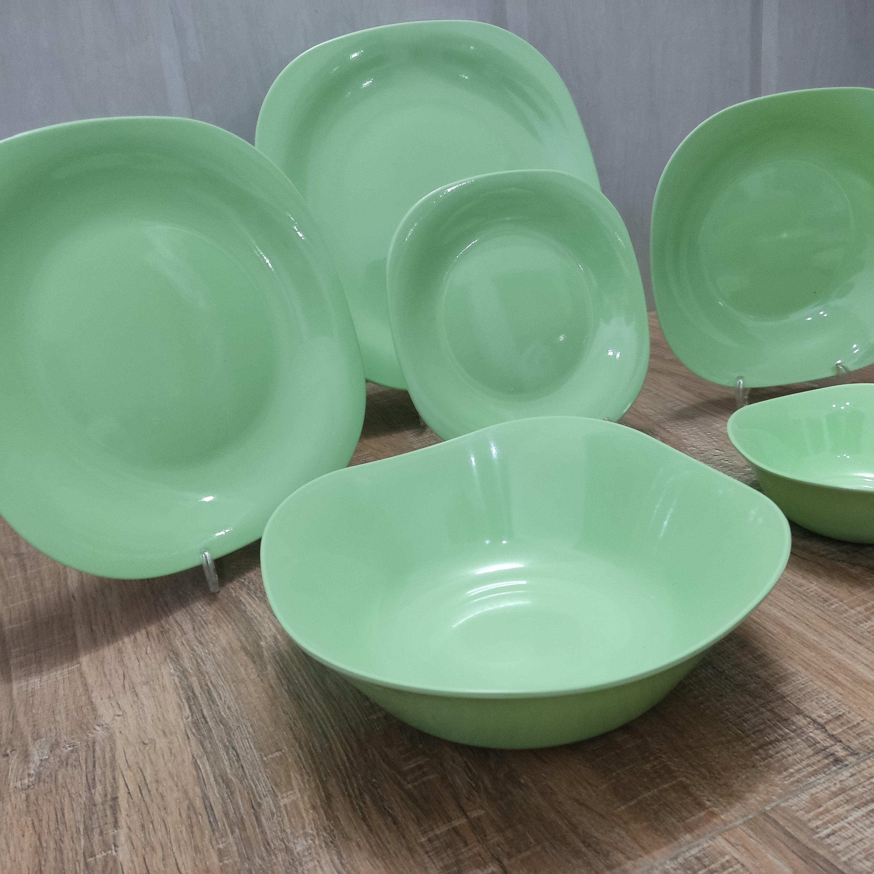 سرویس 26 پارچه ملامین مربع رنگی رنگ سبز درجه یک و دارای استاندارد مارک یزد ملامین شامل 6 عدد بشقاب برنج خوری سایز و قطر 27 سانت 6 عدد خورشت خوری سایز 22 در ارتفاع 3 سانت 6 عدد بشقاب میوه خوری سایز 20 سانت 6 عدد پیاله سایز 15 در ارتفاع 5 سانت یک عدد کاسه سالاد بزرگ سایز 24 در ارتفاع 7 سانت یک عدد دیس برنج مربع سایز 31 در 2 سانت تولید در کارخانه یزد دارای استاندارد ملامین اصل و مواد درجه یک توجه رنگ صورتی و سبز و زرد موجود است برای انتخاب رنگ دیگر در گفتگو پیام بگذارید