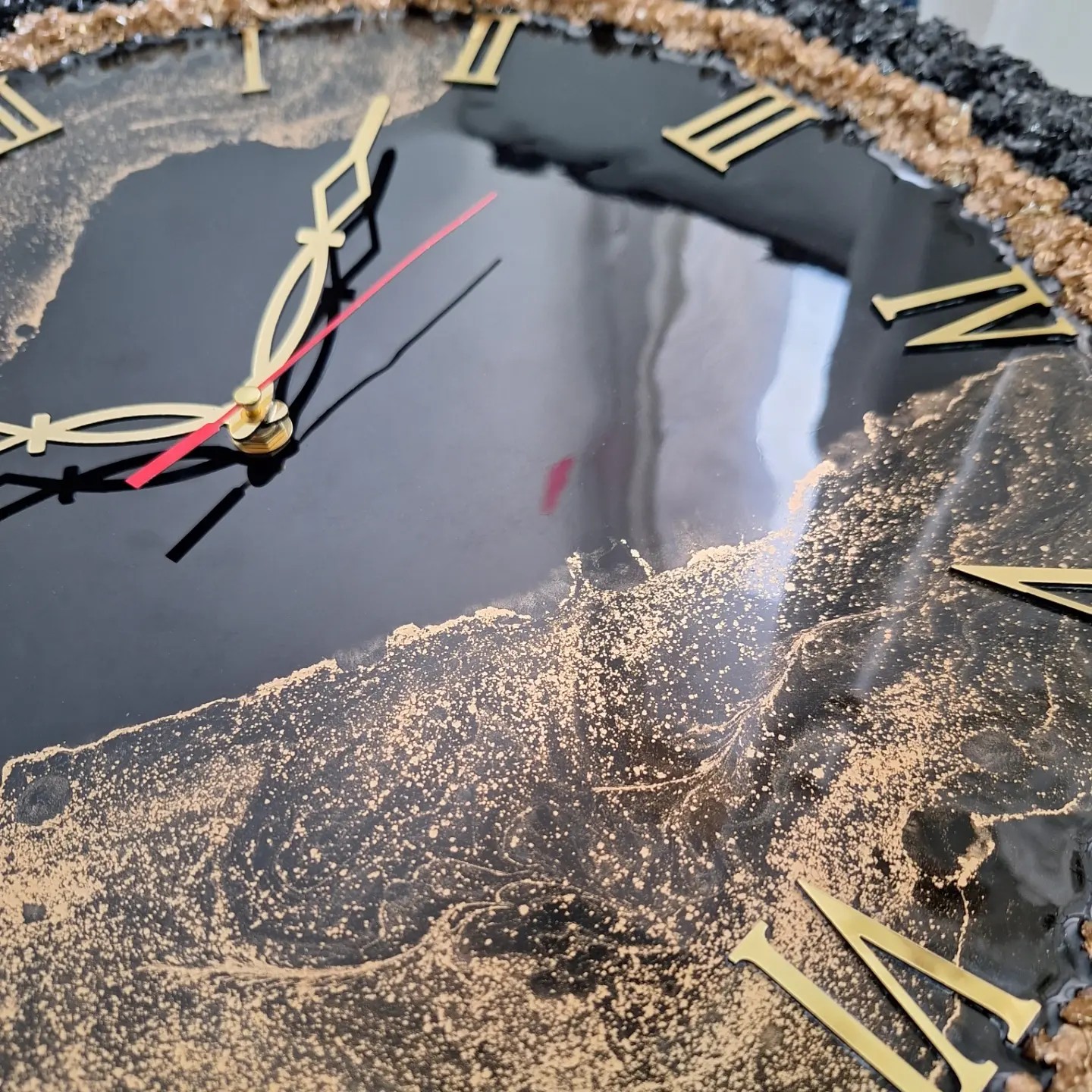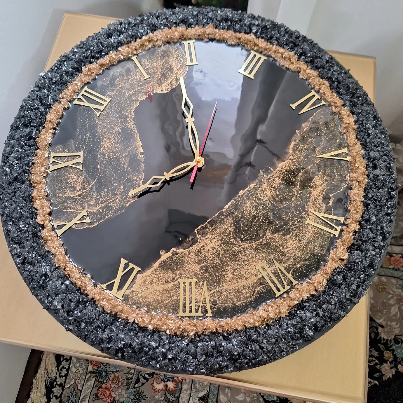ساعت دیواری رزینی دورکریستال کار شده قابل سفارش درسایز و رنگهای مطابق باسلیقه شما